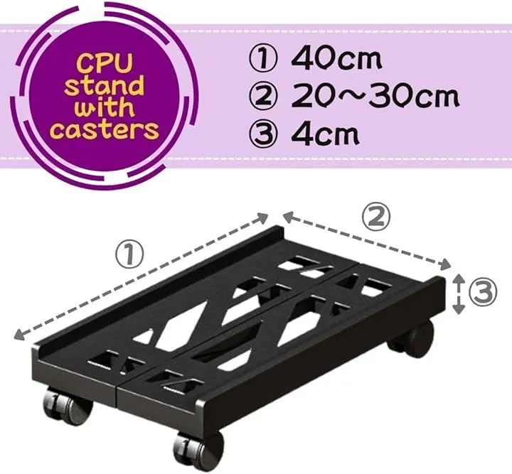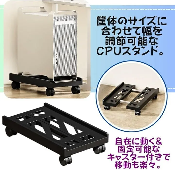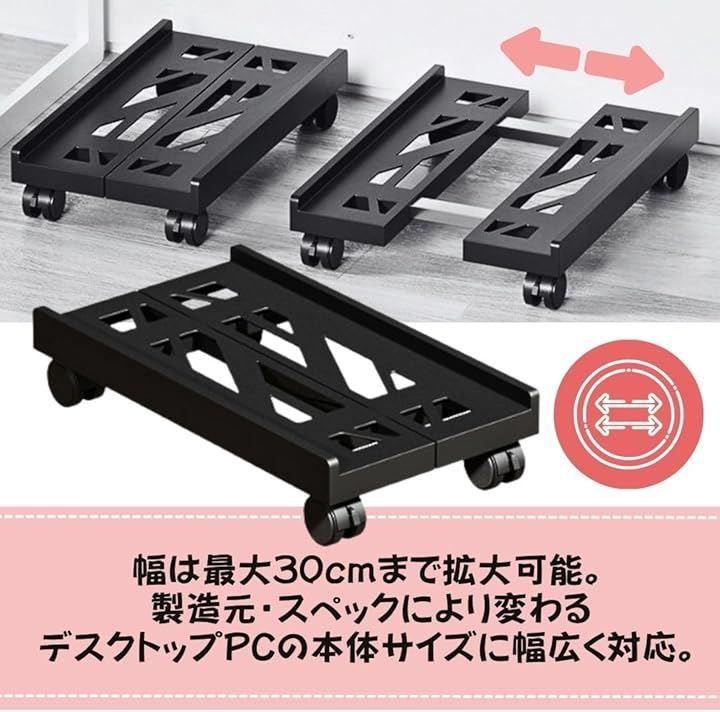 Solvanta CPUスタンド キャスター付き台車 サイズ調整可能 デスク下収納 落下防止 PCカート パソコンラック (黒, 幅20~30x奥行40cm)
