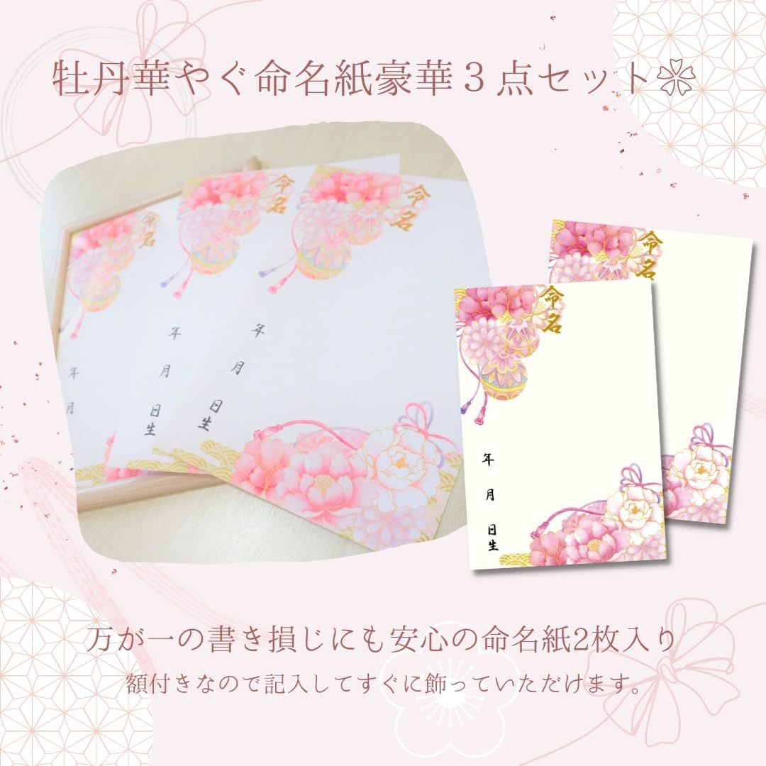 新品 【命名紙セット】A4和風命名用紙 2枚入り 華やか和柄 命名紙 命名式 お七夜 縁起の良い牡丹 出産祝い 軽量白額つき お七夜 命名式 令和6年生まれのお子様 命名書 日本製 MMS001-WH