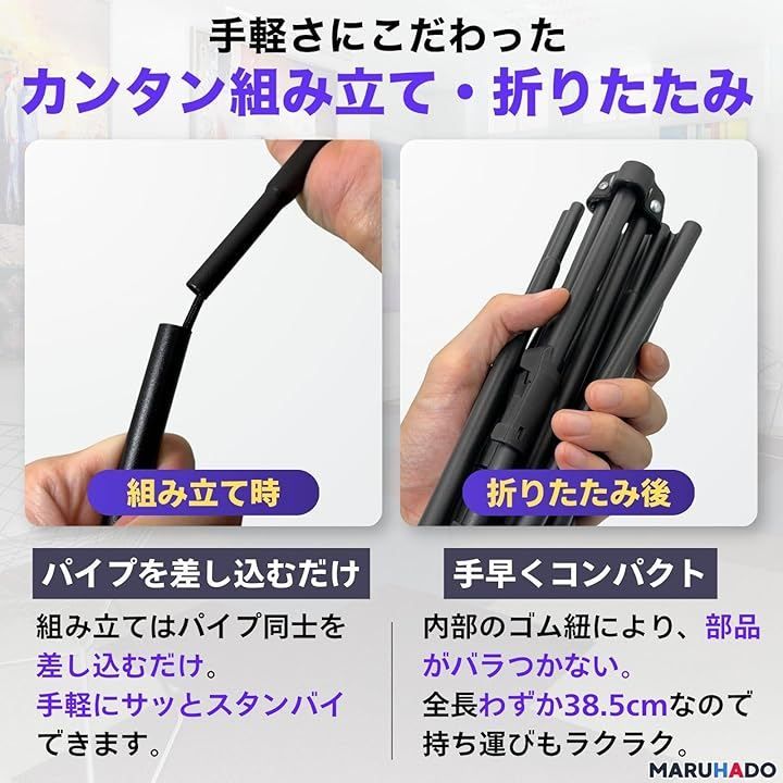「ワンタッチ組み立て」パイプ内の紐構造で工具不要のワンタッチ組み立てが可能。