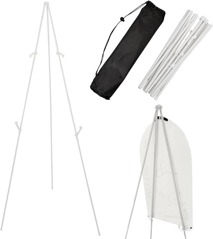 MARUHADO イーゼル 折りたたみ式 スタンド 収納袋付き 高さ調整 画架 三脚 ウェルカムボード 額縁スタンド 屋外 野外 軽量 コンパクト (ホワイト)