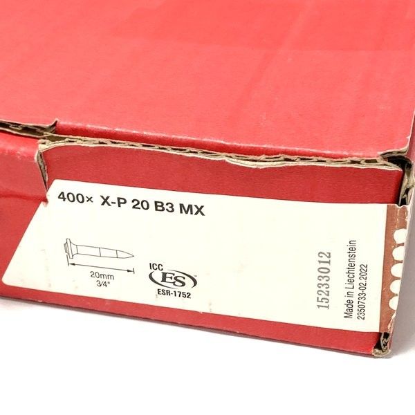 HILTI ヒルティ コンクリート用ネイル 400本入り 20mm 400× X-P 20 B3 MX #2348331 充電式鋲打機用高性能連発ピン