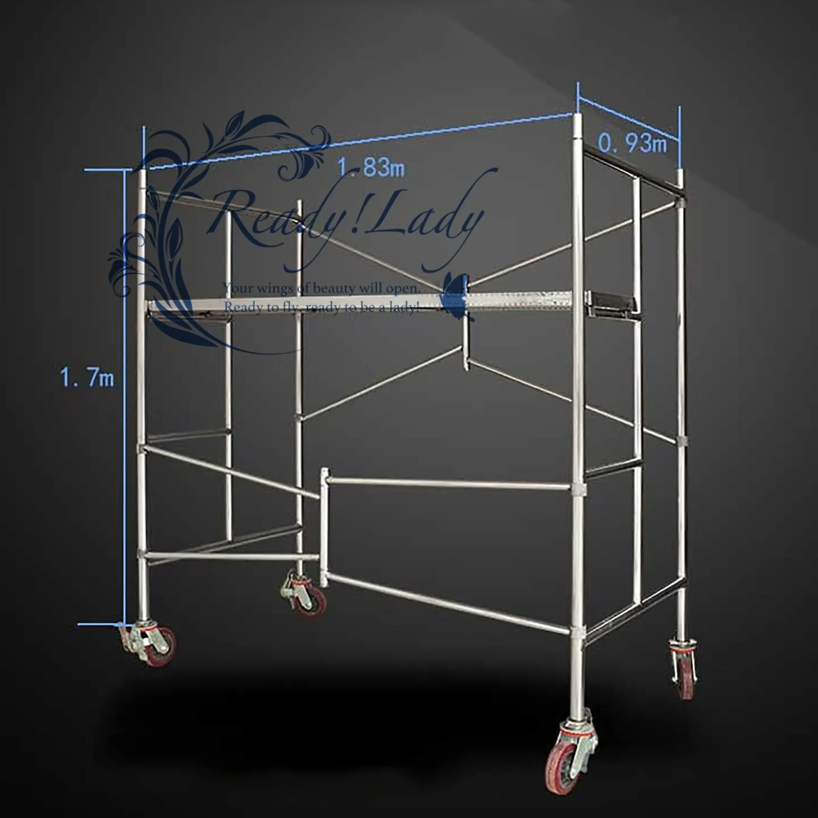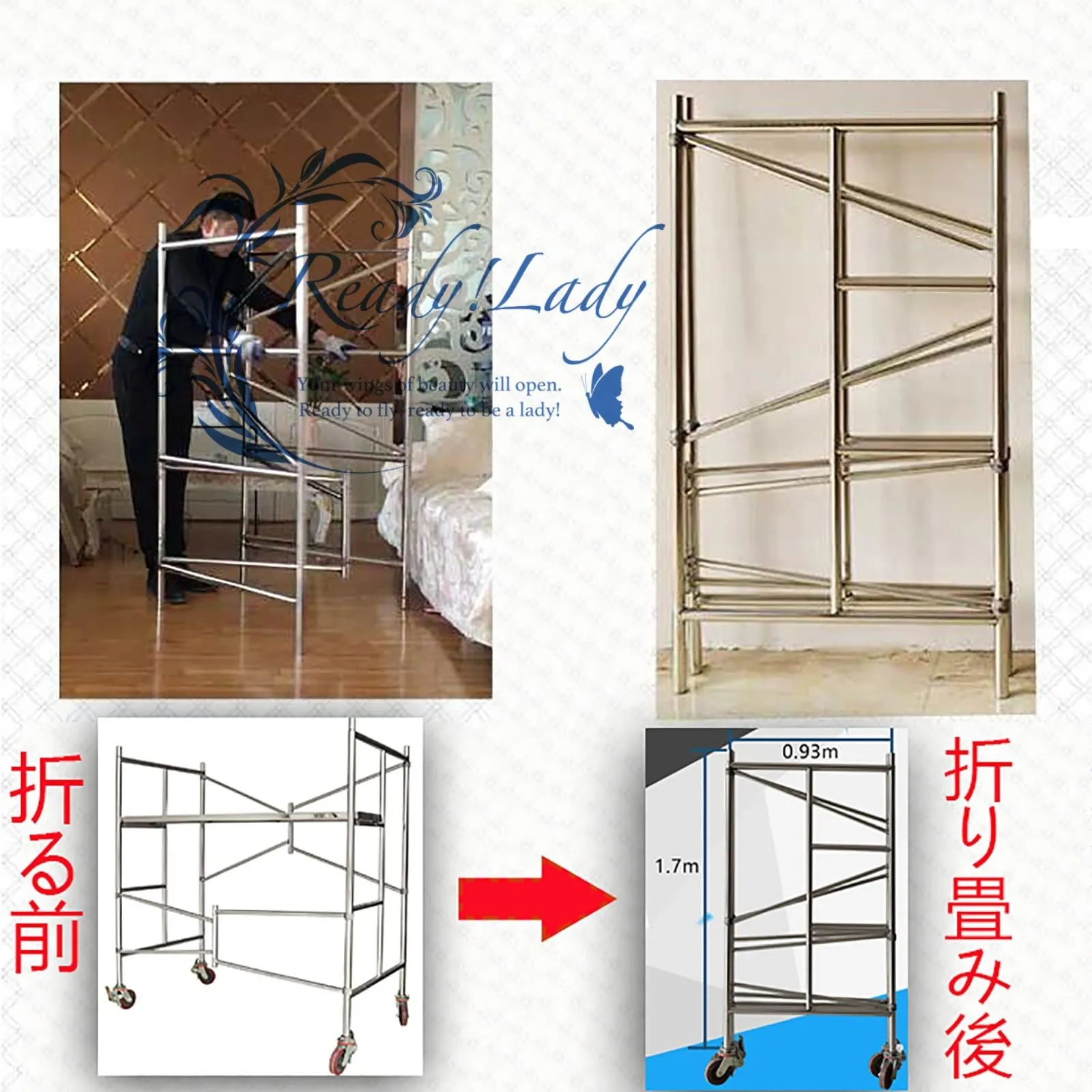足場 折りたたみ式足場の高さ ステンレス鋼の厚い鋼管 キャスター付き 360° 回転 耐荷重 800KG 滑り止め 組み立てが簡単 150x75x150cm