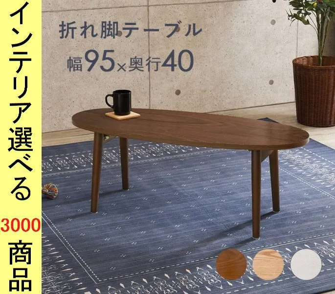 ローテーブル 95×40×32cm 脚折れ式 楕円形 ブラウン・ナチュラル・ホワイトウォッシュ色 YC8500048576