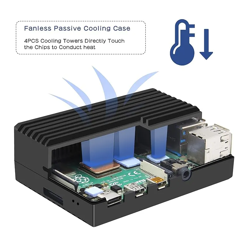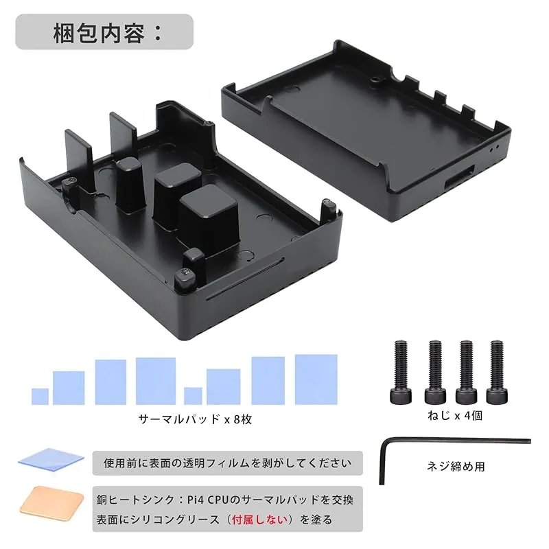 【放熱機能】Pi 4のために特別設計されているパッシブ冷却金属ケースであり、優れた熱放散設計で、ファン無しで騒音ありません。サーマルパッドが4枚付きます。