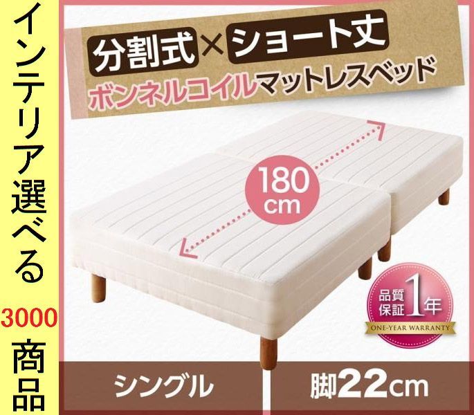 ベッド マットレスベッド 97×180×42cm ポリエステル ボンネルコイル 2分割可能 シングル ショート丈 脚22cm アイボリー色 YC8500026667