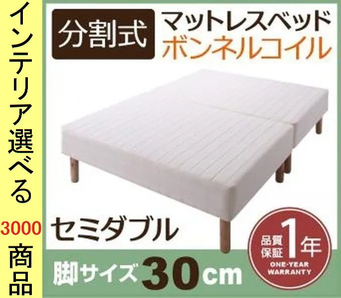 ベッド マットレスベッド 120×195×50cm ポリエステル ボンネルコイル 2分割可能 セミダブル 脚30cm ホワイト色 YC840109294