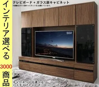 テレビ台 ハイタイプ+キャビネット 185×45×180cm 壁面用 引き出し収納タイプ ガラス扉1台キャビネット付き ウォルナットブラウン色 YC8500045810