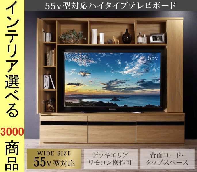 テレビ台 ハイタイプ 180×45×160cm 壁面用 扉・引き出し収納タイプ オークナチュラル色 YC8500028772