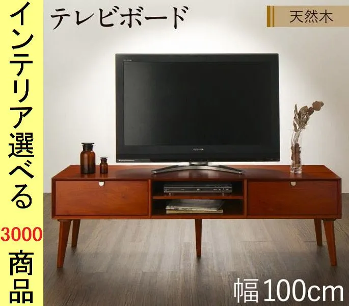 テレビ台 100×40×46cm 壁面用 引き出し収納タイプ インドネシア製 ミドルブラウン色 YC8500047856 (YC850004785シリーズ)