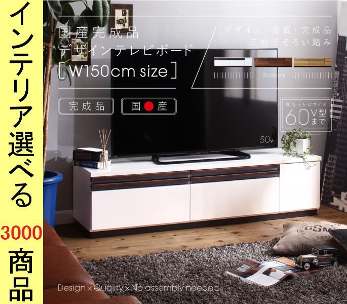 テレビ台 150×42×38cm 壁面用 扉・引き出し収納タイプ 日本製 ホワイト・ブラウン・ナチュラル色 YC8500033603