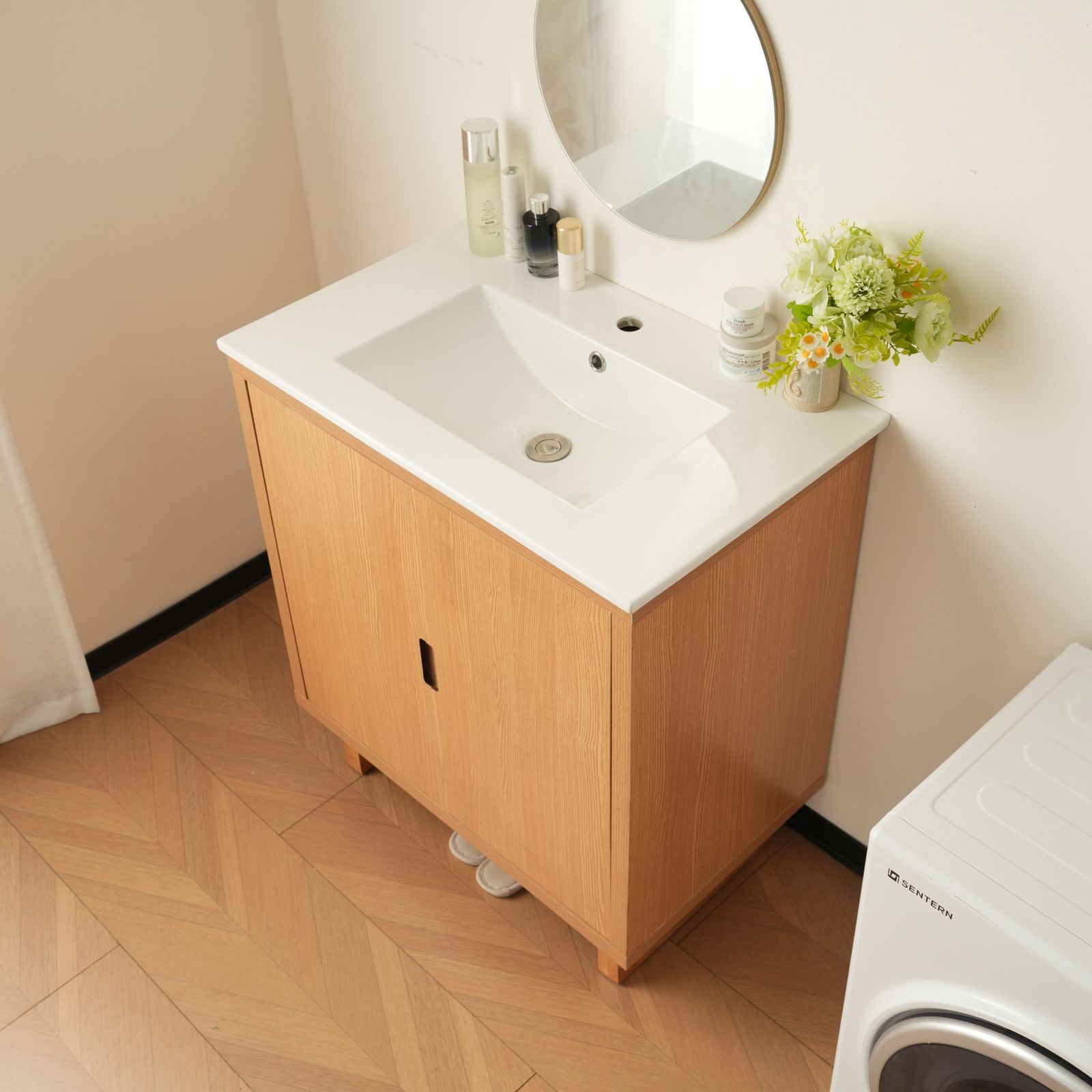 【洗面台下のスペースを有効活用】コンパクトなデザインながら、しっかりとした収納力を確保。限られた空間を効率よく使え、日用品をスッキリ整理できます。 ・洗面ボウルの内側に、水の広がりを抑える設計を採用し、汚れが溜まりにくく、スムーズに排水口へ流れる構造で、お手入れも簡単。