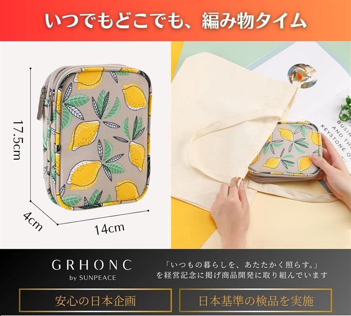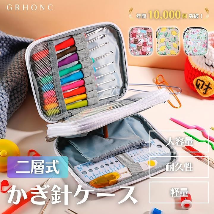 GRHONC かぎ針ケース 編み針ケース 二層式 大容量 編み物 収納 整理 軽量 コンパクト 手芸 収納ポーチ (レモン)