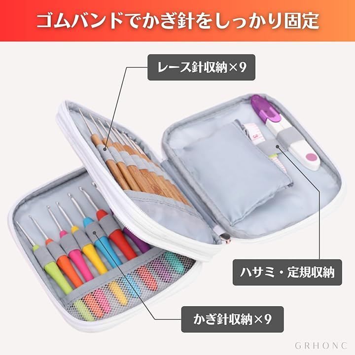 かぎ針とレース針を分けて収納できるため、上級者の細かい管理ニーズにも対応。
