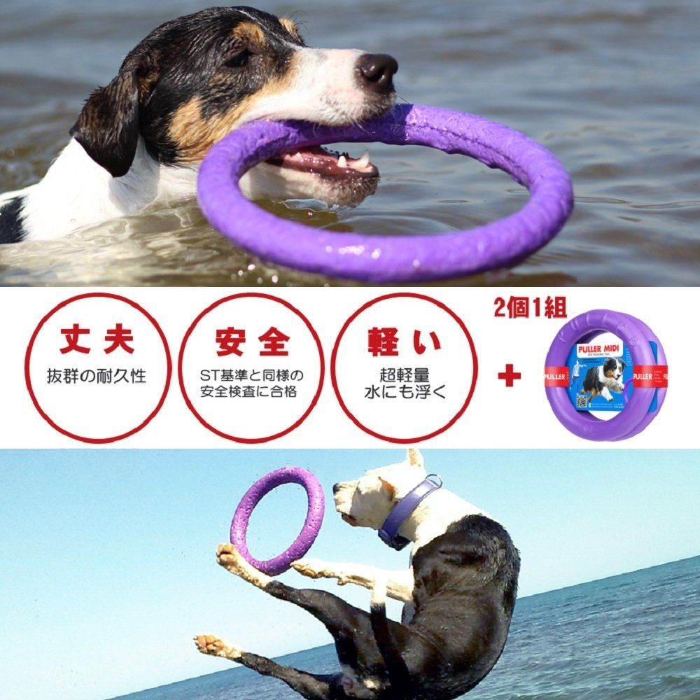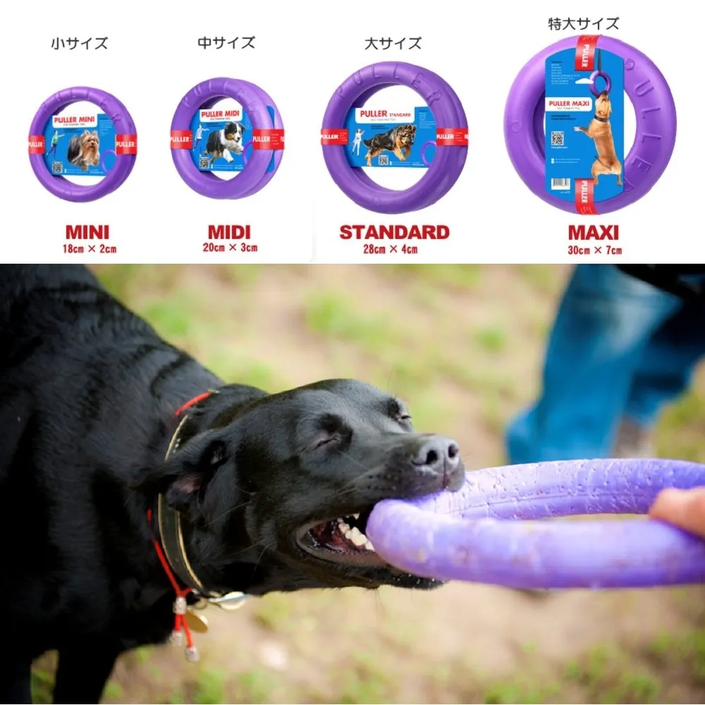 【商品説明DVD付】 欧米で大人気の『PULLER(プラー)』は、ウクライナのドッグトレーナーによって開発された全く新しいドッグトレーニング器具です。2サイズあり、本商品は、中型・大型犬用で、驚くべき耐久性に優れているのです。約1年間、ペット専門学校や多くのドッグトレーナーのモニターにヒヤリングを続け、その優れたしつけ・運動能力アップを確信し、2014年5月から日本に正式上陸させました。「ボール(持ってこい)・ロープ(ひっぱりっこ)・フライングディスク(ジャンプ&キャッチ)」の3つの遊びがこれ1つで可能にします。また、水に浮くので水遊びもできちゃいます。さらにプラーは安全・安心なおもちゃで、歯にも優しく、人間の子供の玩具の安全基準である『ST基準』と同様の安全適合検査にも合格しているのです。耐久性も抜群で極めて丈夫なおもちゃとしてきっとご満足いただける優れた商品です。 使用上の注意 トレーニング玩具ですから、決して与えっぱなしにしないでください。 使用方法 ホームページで動画をご覧ください。 ご注意(免責)>必ずお読みください 本商品は、人間の子供の玩具の安全基準である『ST基準』と同様の安全適合検査に合格していますが、もしも体内に商品の欠片が入ってしまった場合は、獣医さんに必ず診察してもらいましょう。 使用上の注意 トレーニング玩具ですから、決して与えっぱなしにしないでください。 使用方法 ホームページで動画をご覧ください。 ご注意(免責)>必ずお読みください 本商品は、人間の子供の玩具の安全基準である『ST基準』と同様の安全適合検査に合格していますが、もしも体内に商品の欠片が入ってしまった場合は、獣医さんに必ず診察してもらいましょう。 最後までご確認頂き誠にありがとうございました。 上記をご確認頂き、ご購入いただけましたら幸いです。 何かご不明な点がございましたらお気軽にメッセージからお問い合わせ下さい。