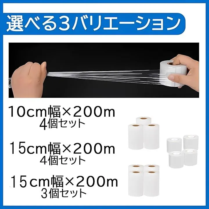 「お得にまとめ買い 高強度ストレッチフィルム」10cm or 15cm 幅 x200M巻