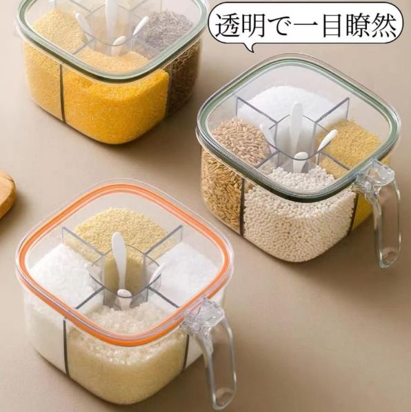 【新品・未使用】 調味料ポット 調味料入れ 砂糖入れ 塩入れ 湿気防止 スプーン付き(四つ) パッ