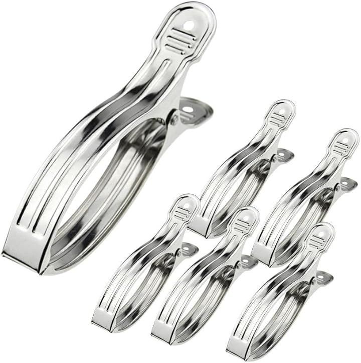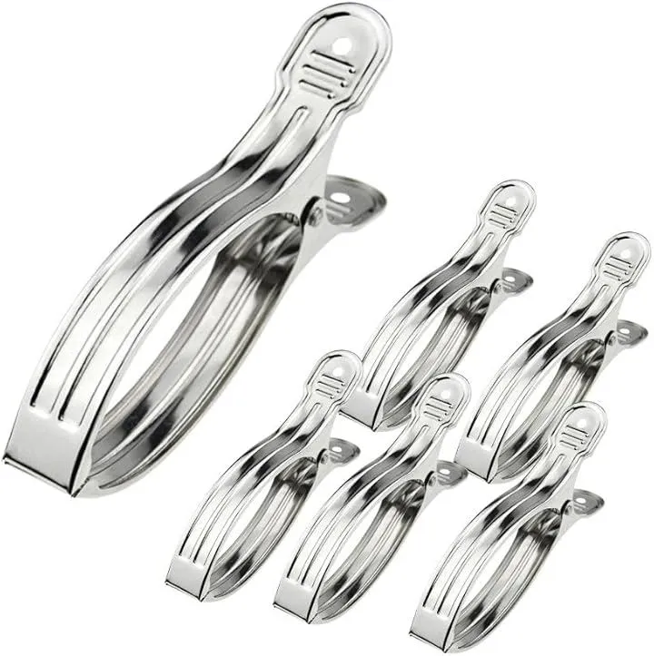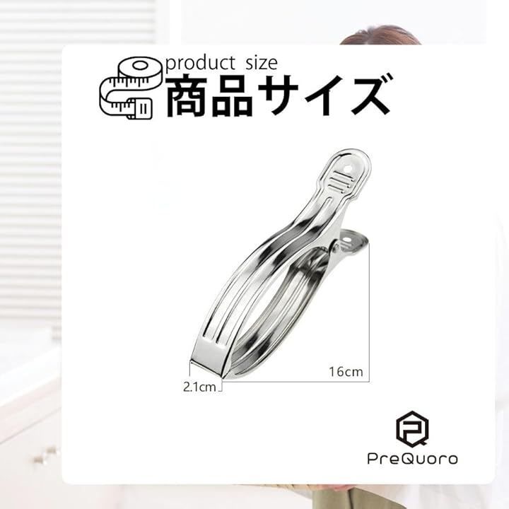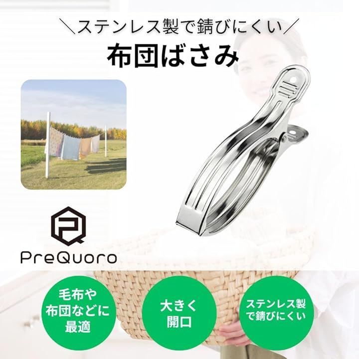 PreQuoro 布団ばさみ ステンレス 大型 強力 防風 6個セット 洗濯バサミ 竿ピンチ 錆びにくい ベランダ物干し 片手用 (シルバー, 16cm)