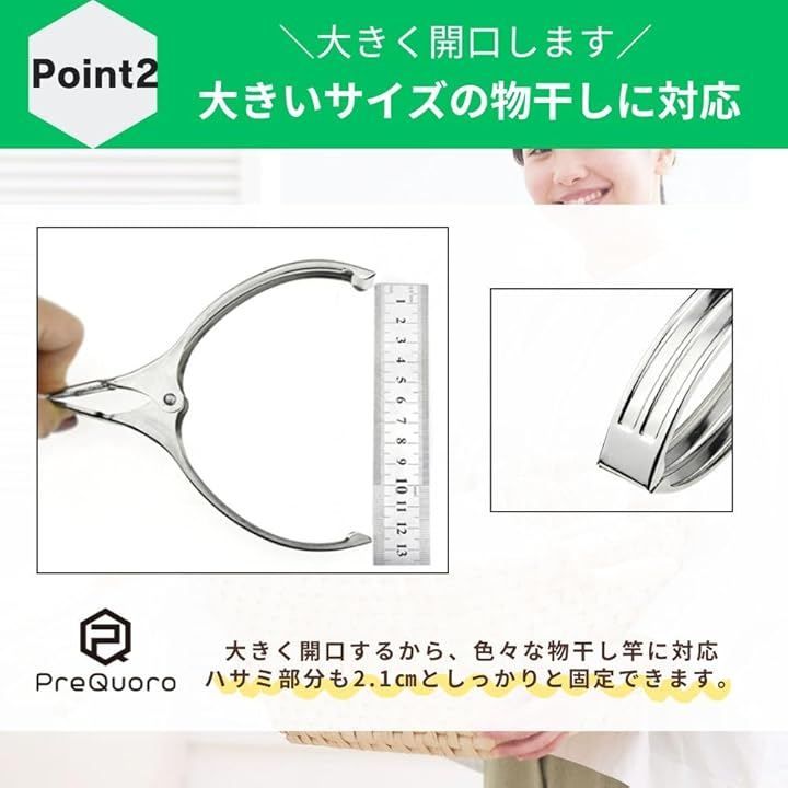 開口部は約2.1cmで物干し竿やハンガーにしっかりフィットし、ズレや落下を防止。