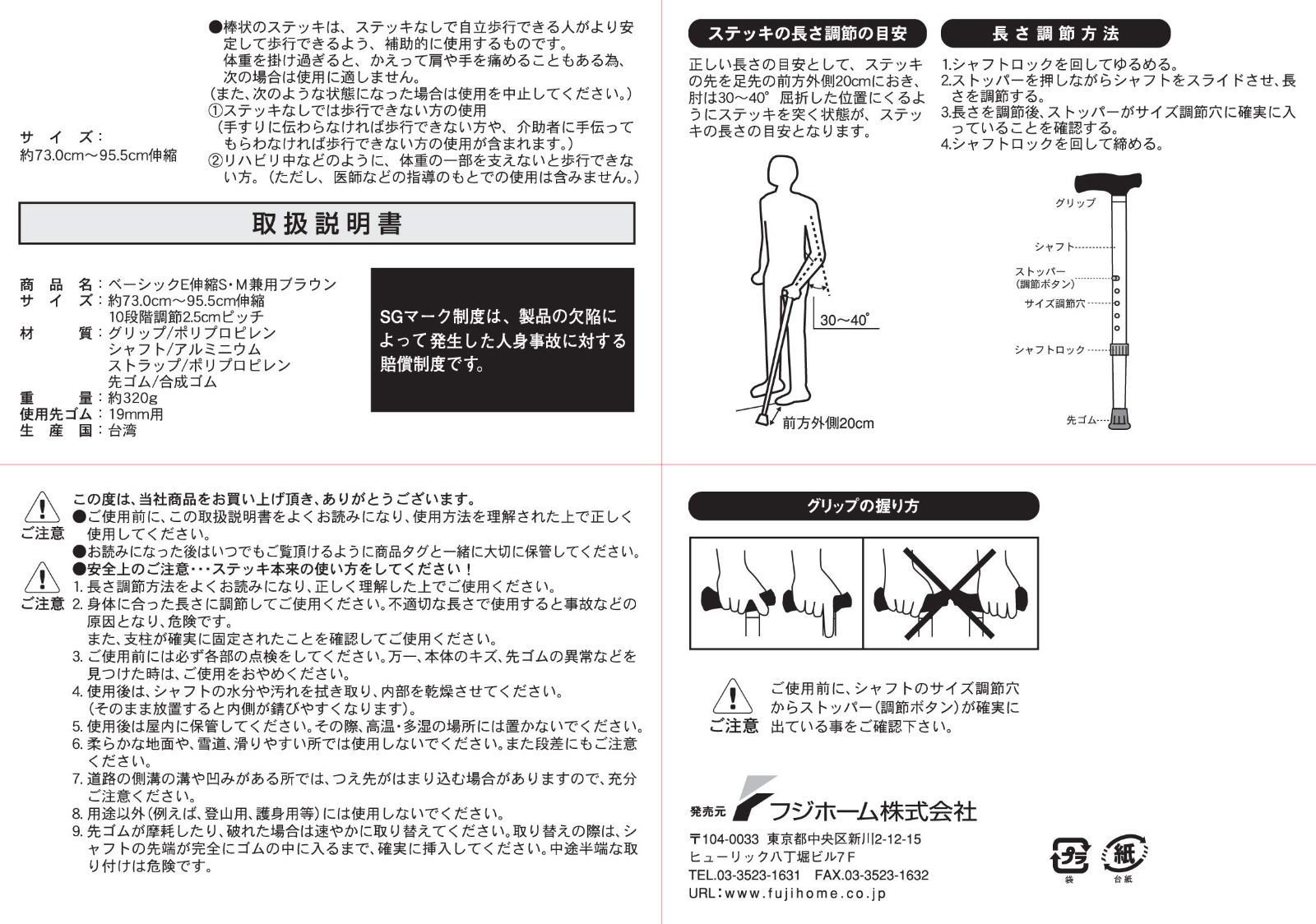 【ラスト1点】WB3901 (替えゴム付き) 杖 S・M兼用 伸縮式ステッキ ベーシック 対応身長140~185cm ブラウン ステッキ フジホーム