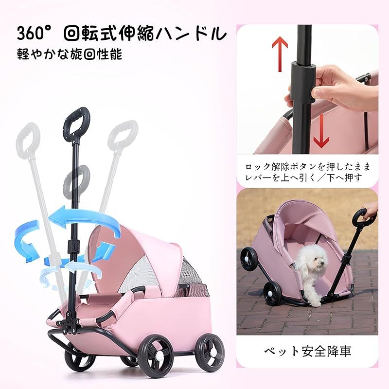 【高品質材質】ペット用カートは高強度と硬度を備えた軽量のたんそこうフレームで作られ、変形しにくく、耐久性が優れます。軽量で丈夫な素材で作られたペットカート、高品質のオックスフォード生地は遮光性や防水加工があり。