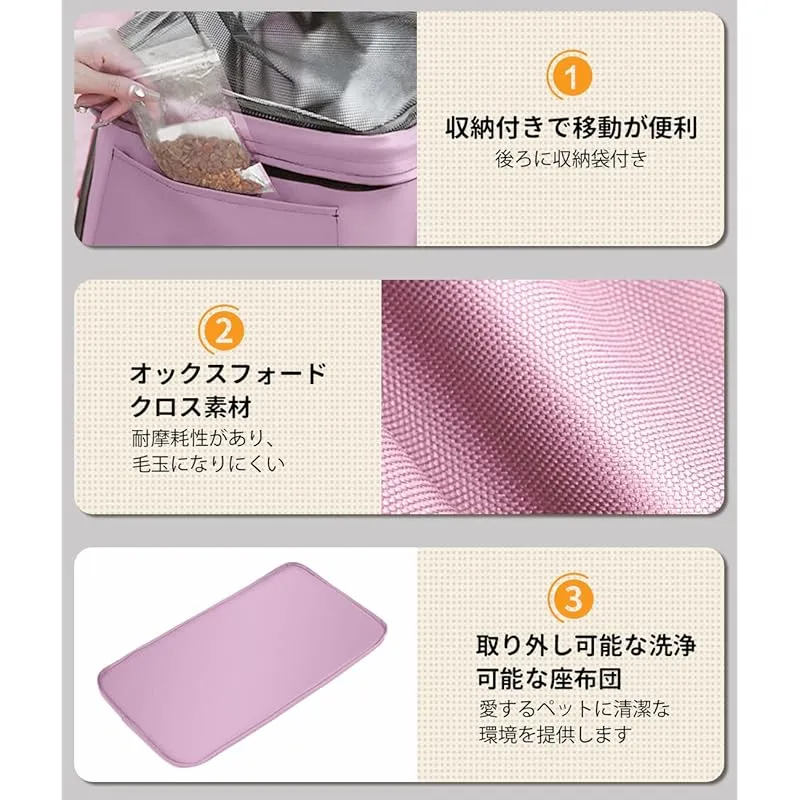 【通気性抜群 & 車内マット取外し可能&丸洗いOK】このカートは、通気性に優れたメッシュ素材を使用しており、ペットが快適に過ごせるよう設計されています。高温多湿の時期でも、ペットは涼しく、快適に過ごすことができます。いつでも清潔、快適な空間をペットに。内部のマットは取り外しが可能で、清潔に保つのも簡単です。取り外したマットはそのまま水洗いできる仕様になっており、 抜け毛や汚れ、ニオイなどが気になるときにも気軽にお手入れできます。 お散歩やお出かけの後でも、 清潔な環境をすぐに整えられるので、ペットも飼い主も安心。 衛生面にこだわりたい方にぴったりの設計です。