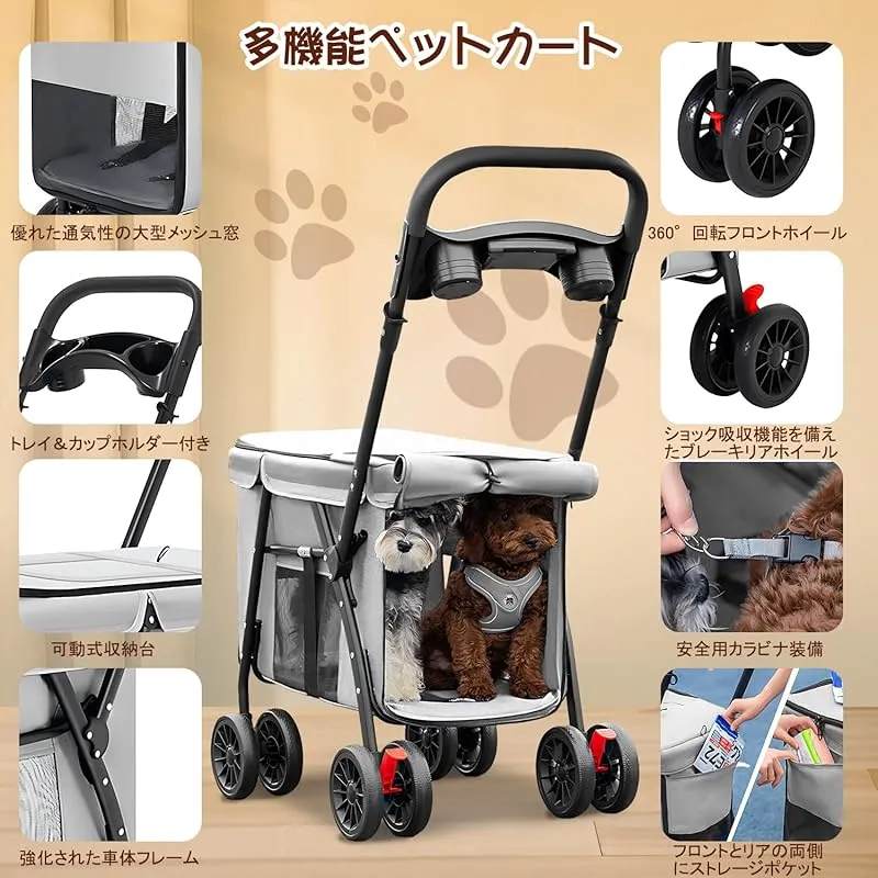 OXSITO ペットカート 中型犬 小型犬 猫 多頭用 大空間 折り畳み簡単 軽量コンパクト犬用カート前輪360°回転 後輪ブレーキ 飛び出し防止リード付き 介護/旅行/散歩用 おしゃれ ペットバギー 0