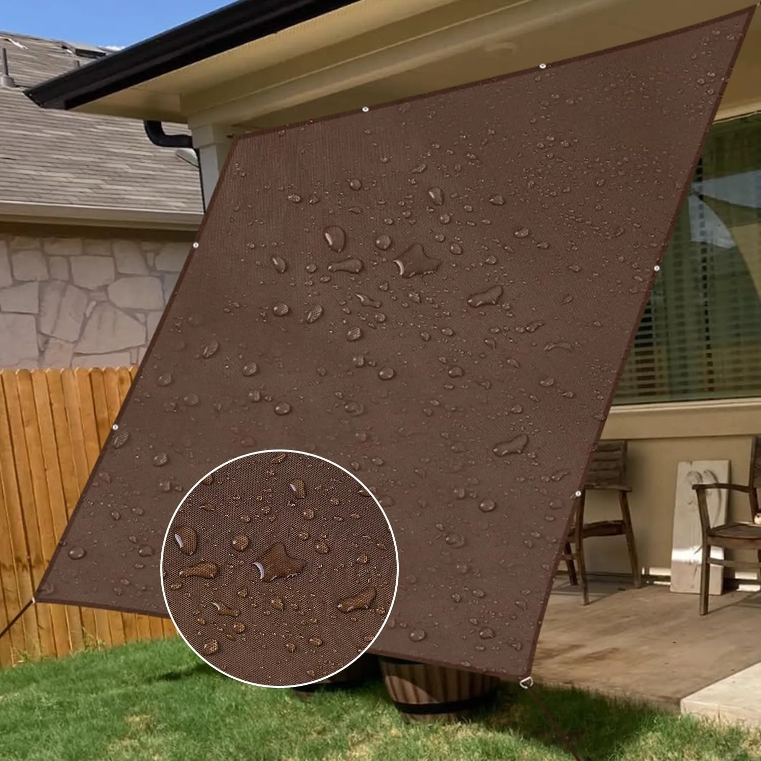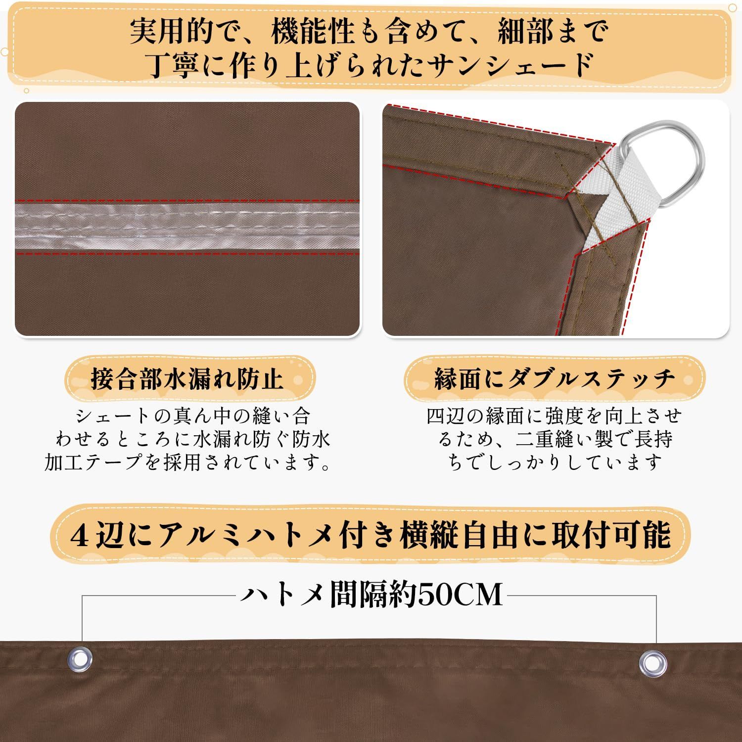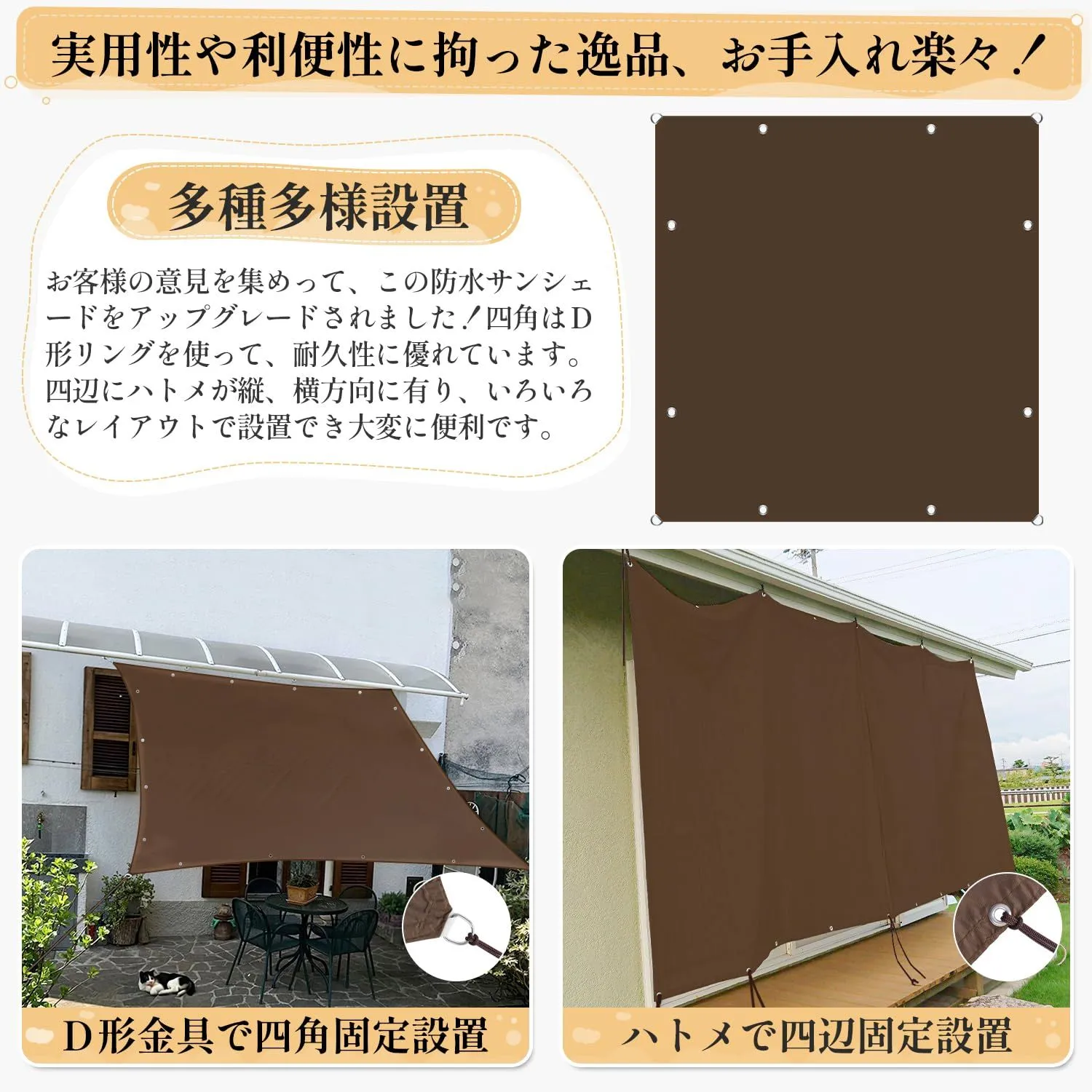 XiaZ 日除けシェード 2層撥水防水加工 雨よけ 防水サンシェード 400Dポリエステル 強度UP PU塗装 接合部水漏れ防止 紫外線UVカット ベランダサンシェード オーニング 庭用タープ 撥水 シェード 固定ロープ 付属 モカ色3×3Mサイズ
