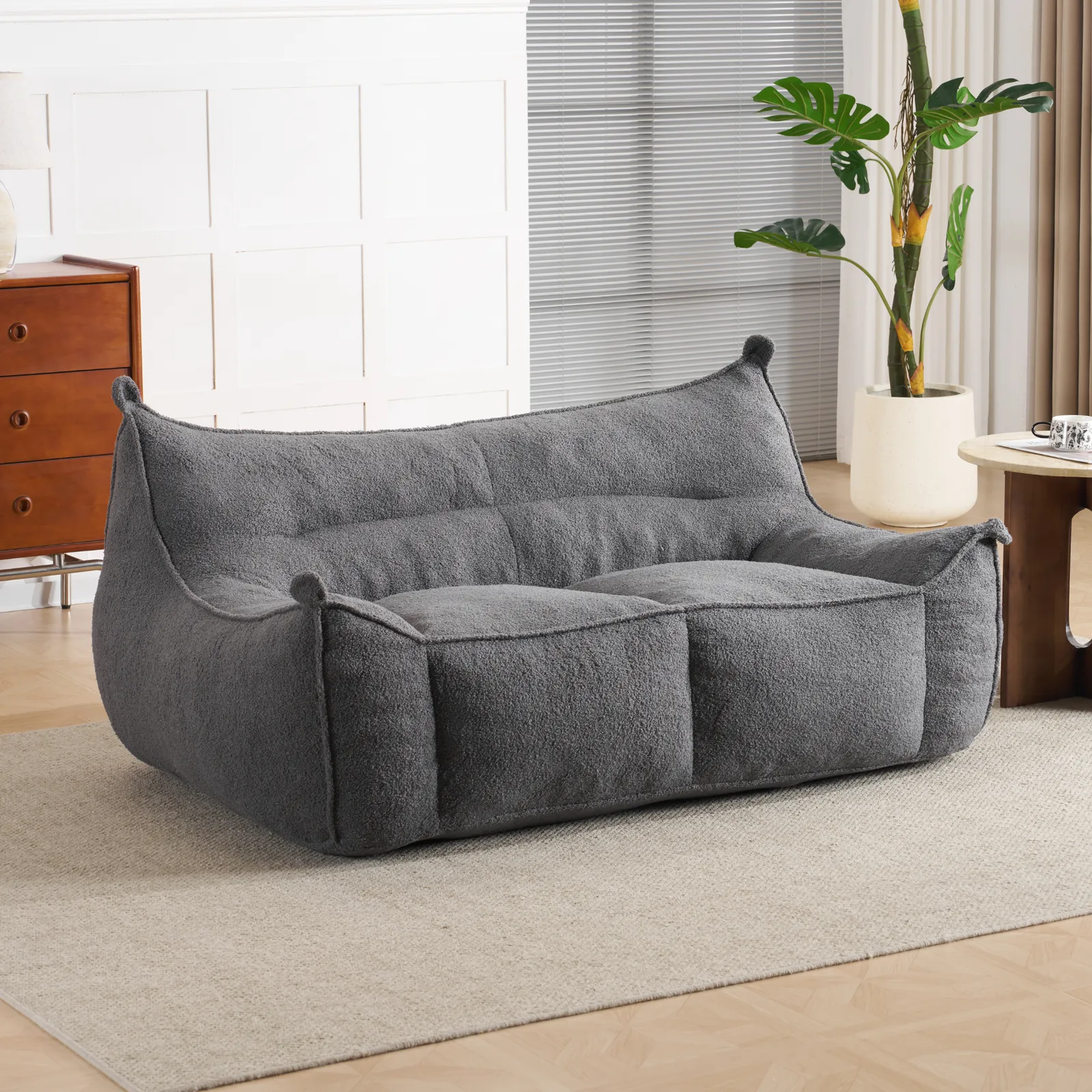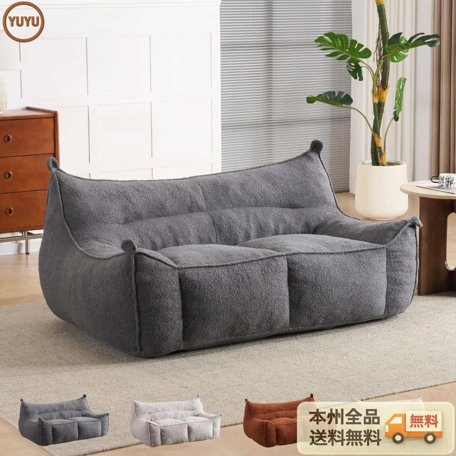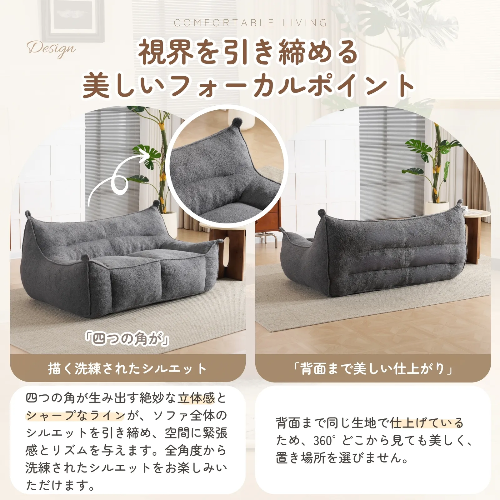 【2人掛けソファ】グレー 圧縮ソファ クッションソファ 座椅子 圧縮梱包 シンプル フロアソファ 座る 可愛い外観 実用性 コンパクト 包まれる感じ コスパ最高 耐荷重300kg ふわふわ感 圧力分散 コンパクト 一人暮らし