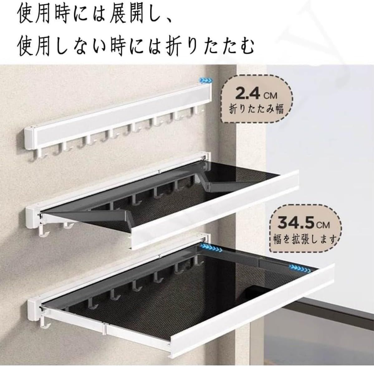 省スペース設計:引き込み式および折りたたみ式の機能により、使用時にはラックを展開し、不要な時には壁に平らに折りたたむことができるため、寝室、バスルーム、玄関、バルコニーの貴重なスペースを節約できます。