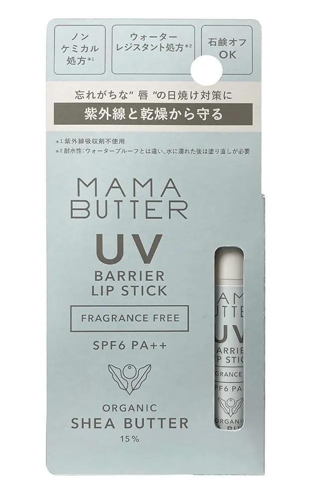 ママバター 無添加 UVバリア リップスティック SPF6 PA++ 【高保湿 オーガニックシアバター配合】 (無香料) 4g 3i5