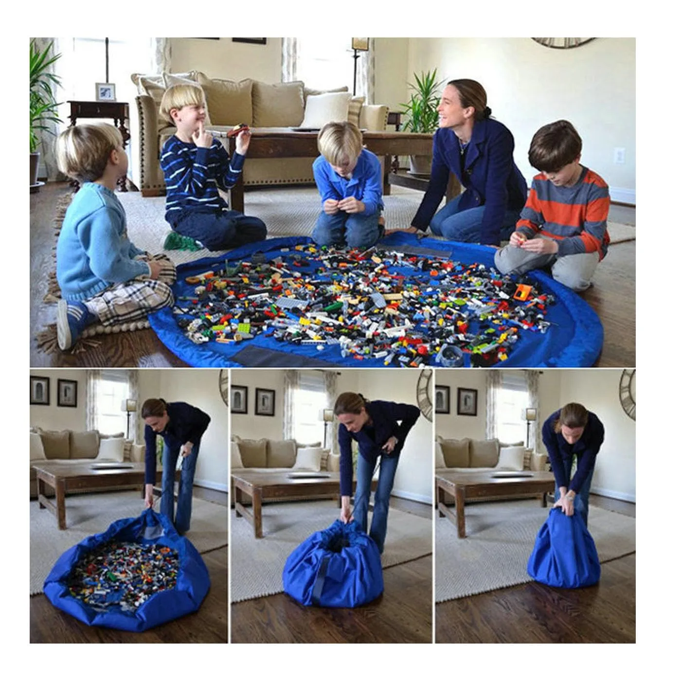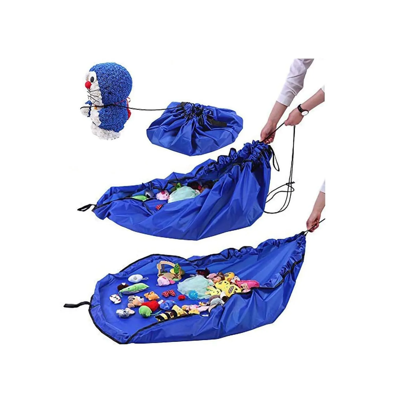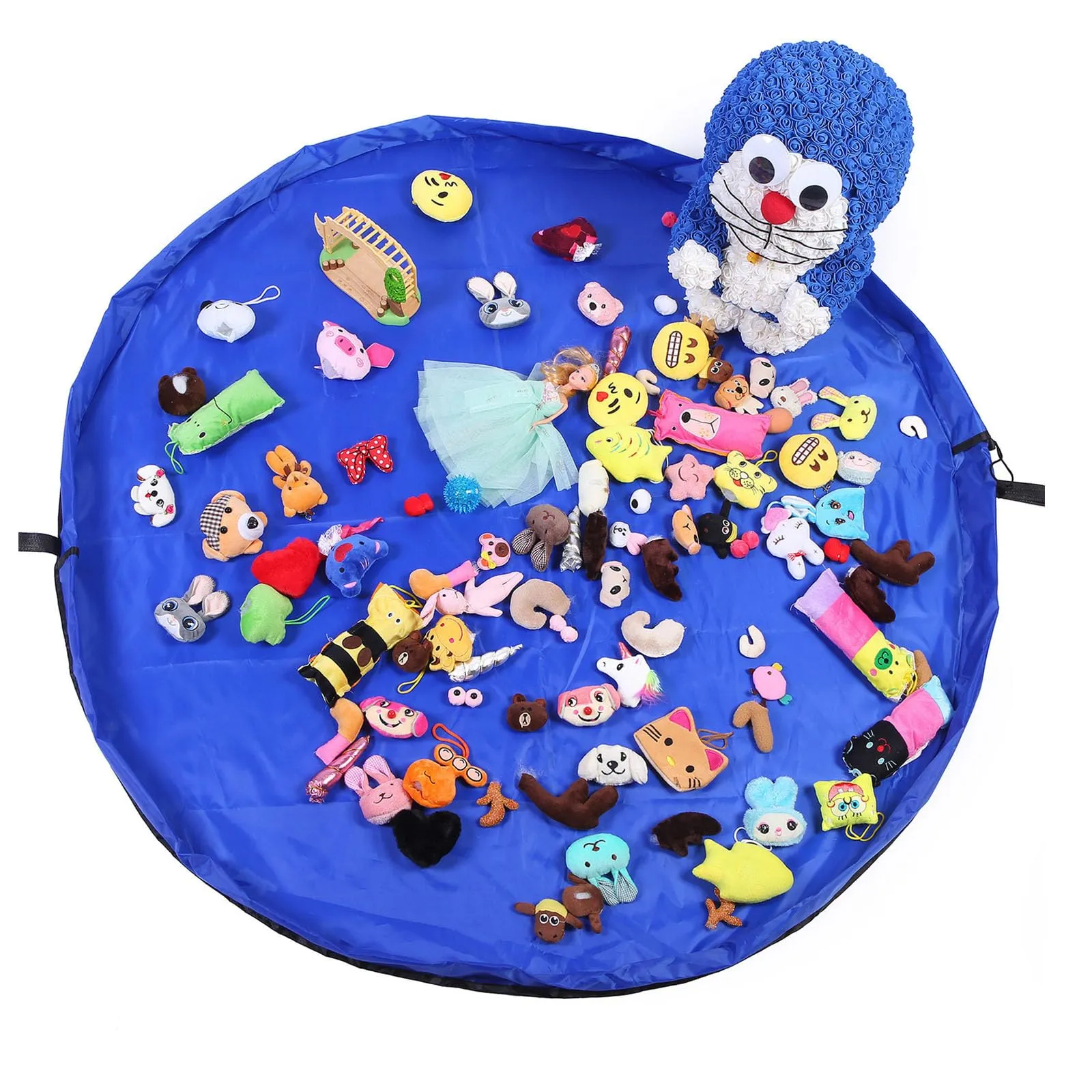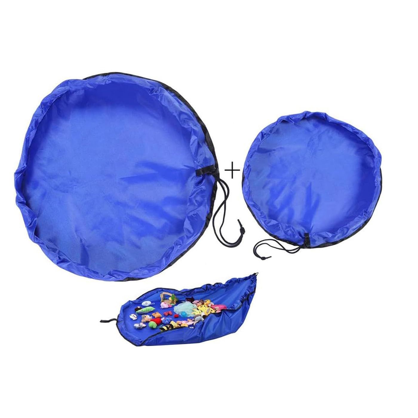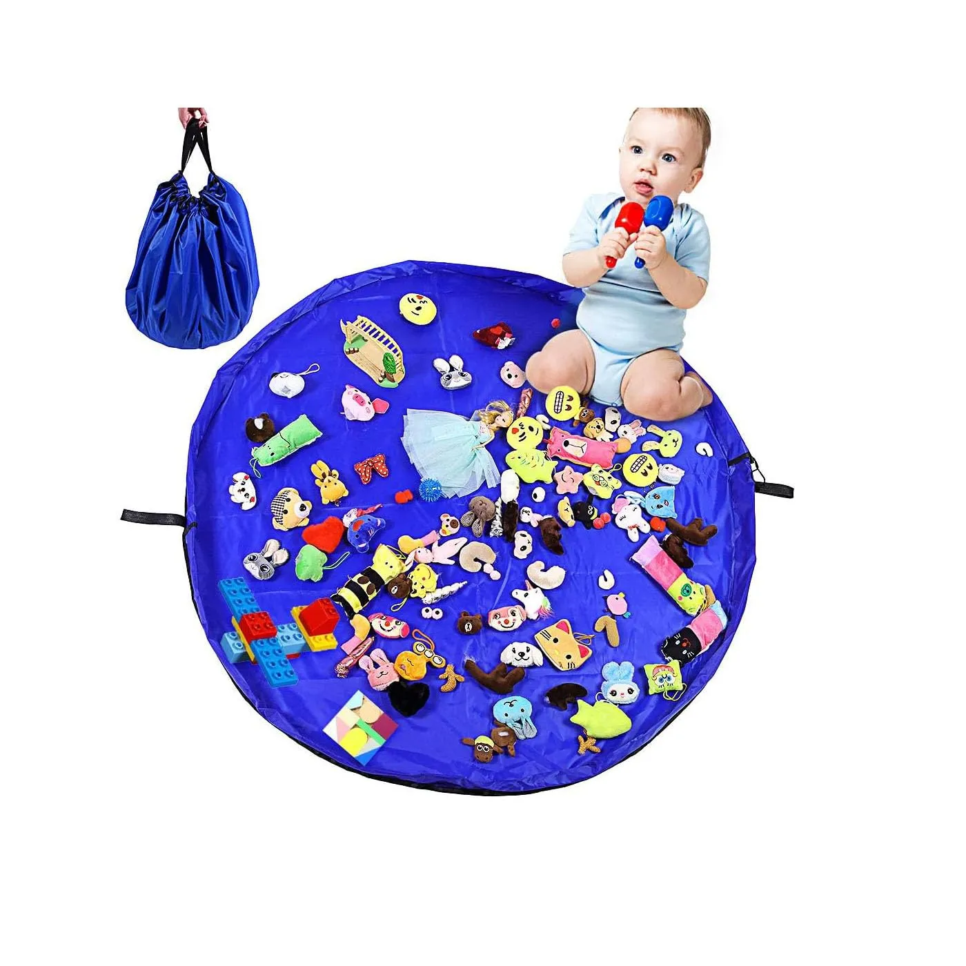 新品 おもちゃ収納バッグ 子ども プレイマット 積み木 お片付け簡単 特大マット 直径150cm 折り畳みで便利 収納用品 自宅&外遊び (ブルー) 折り畳み式 玩具収納袋 お片付け簡単 収納用品