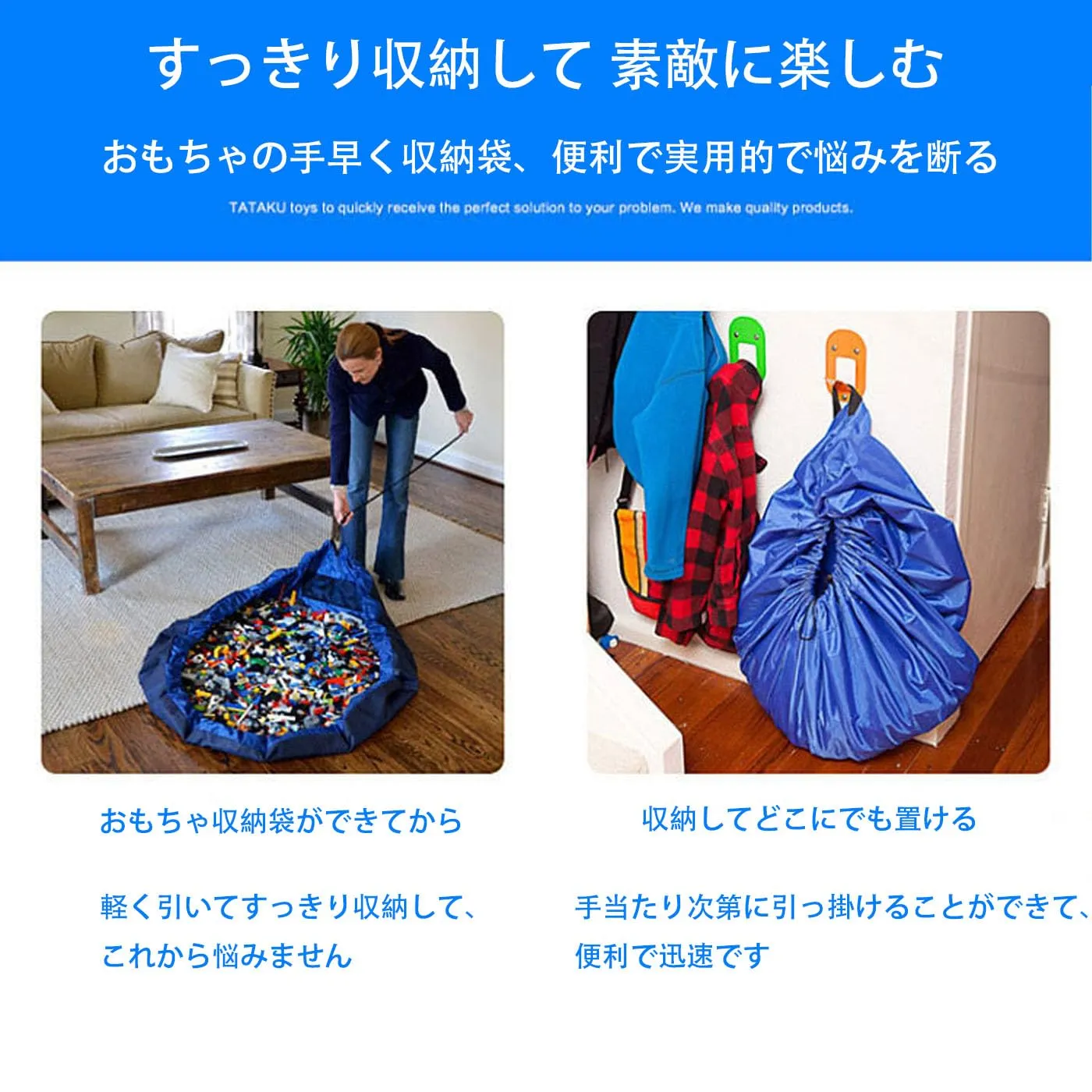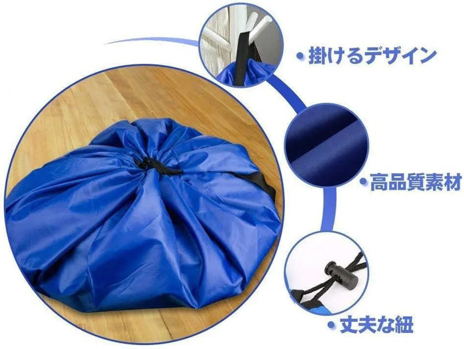 おもちゃ収納バッグ 子ども プレイマット 積み木 お片付け簡単 特大マット 直径150cm 折り畳みで便利 収納用品 自宅&外遊び (ブルー) 折り畳み式 玩具収納袋 お片付け簡単 収納用品