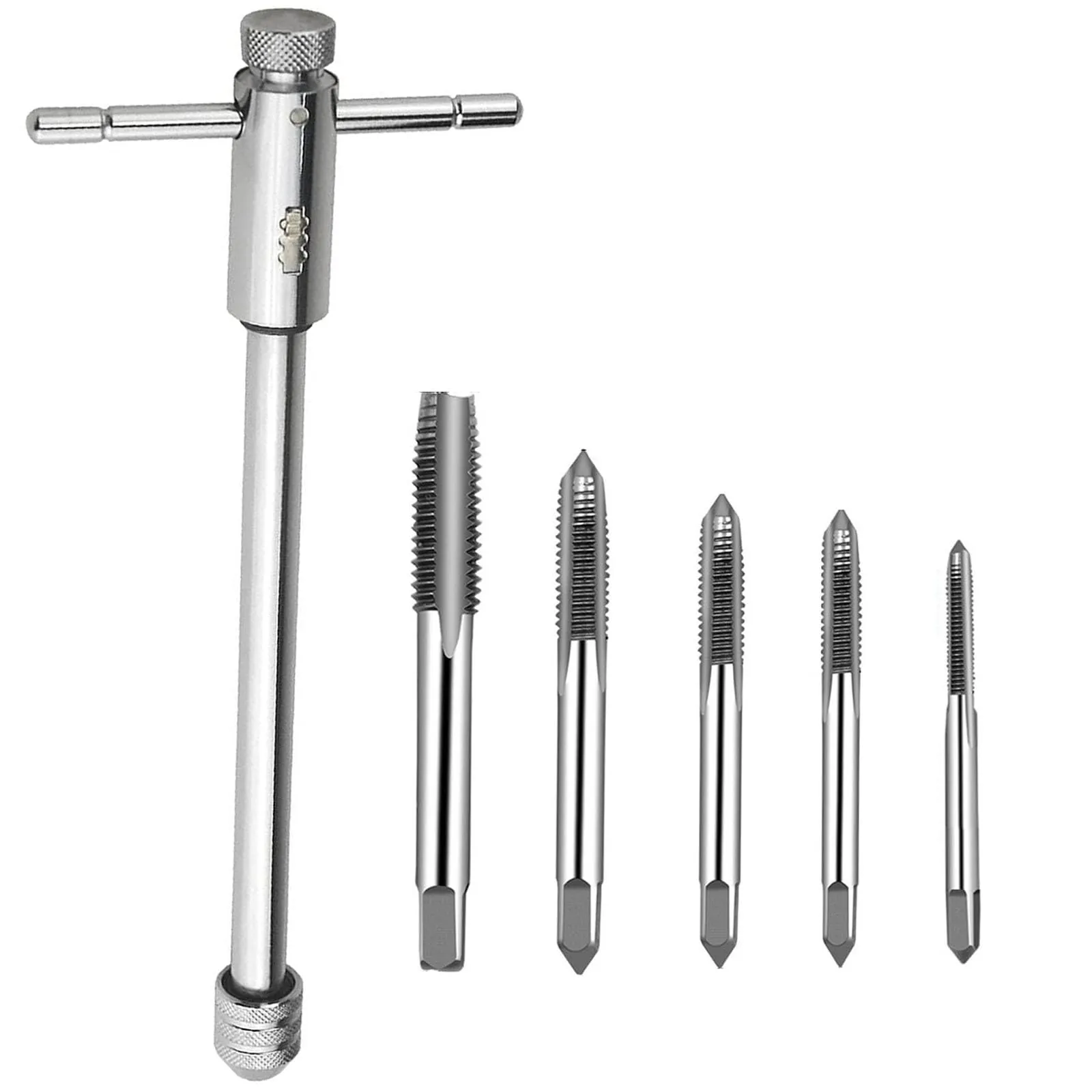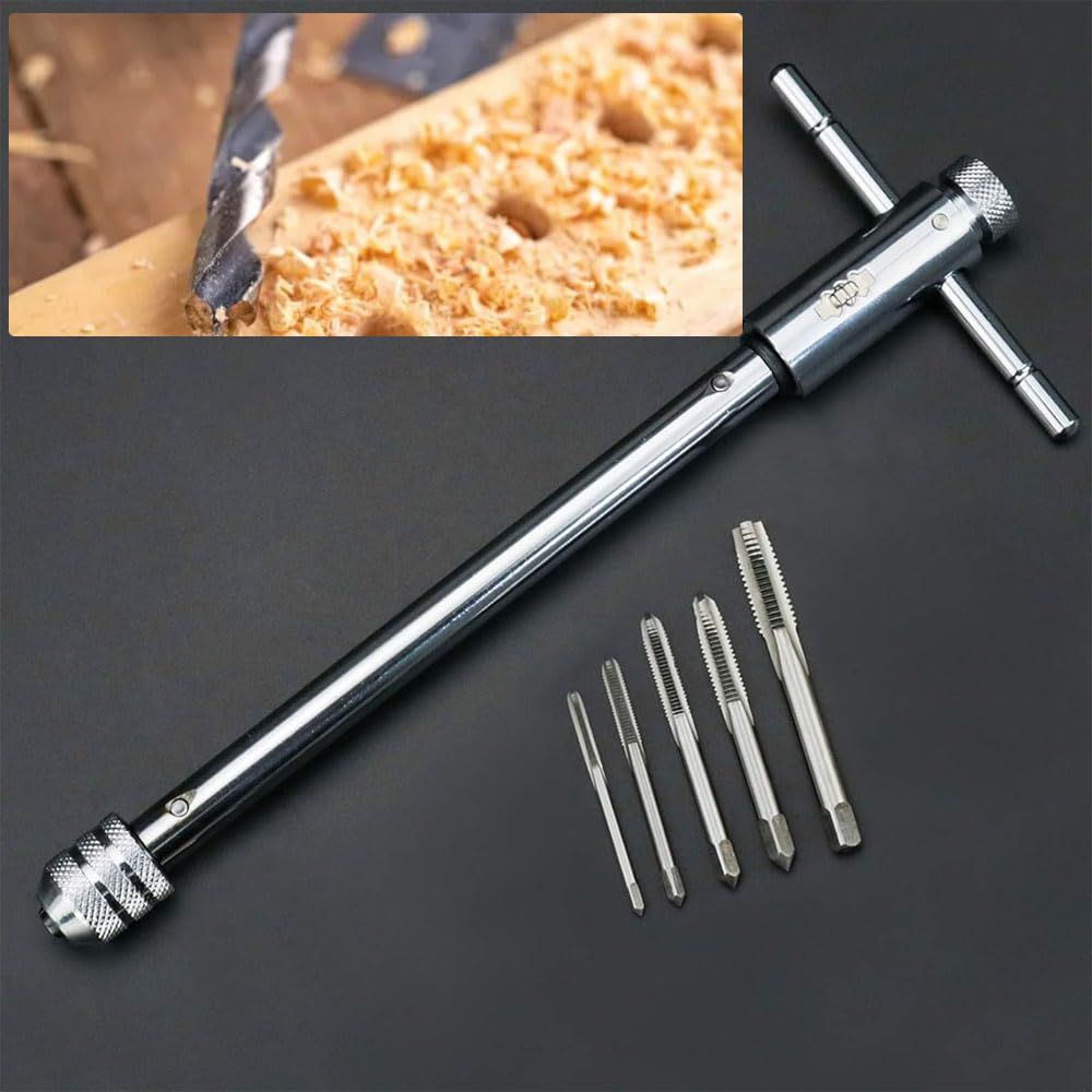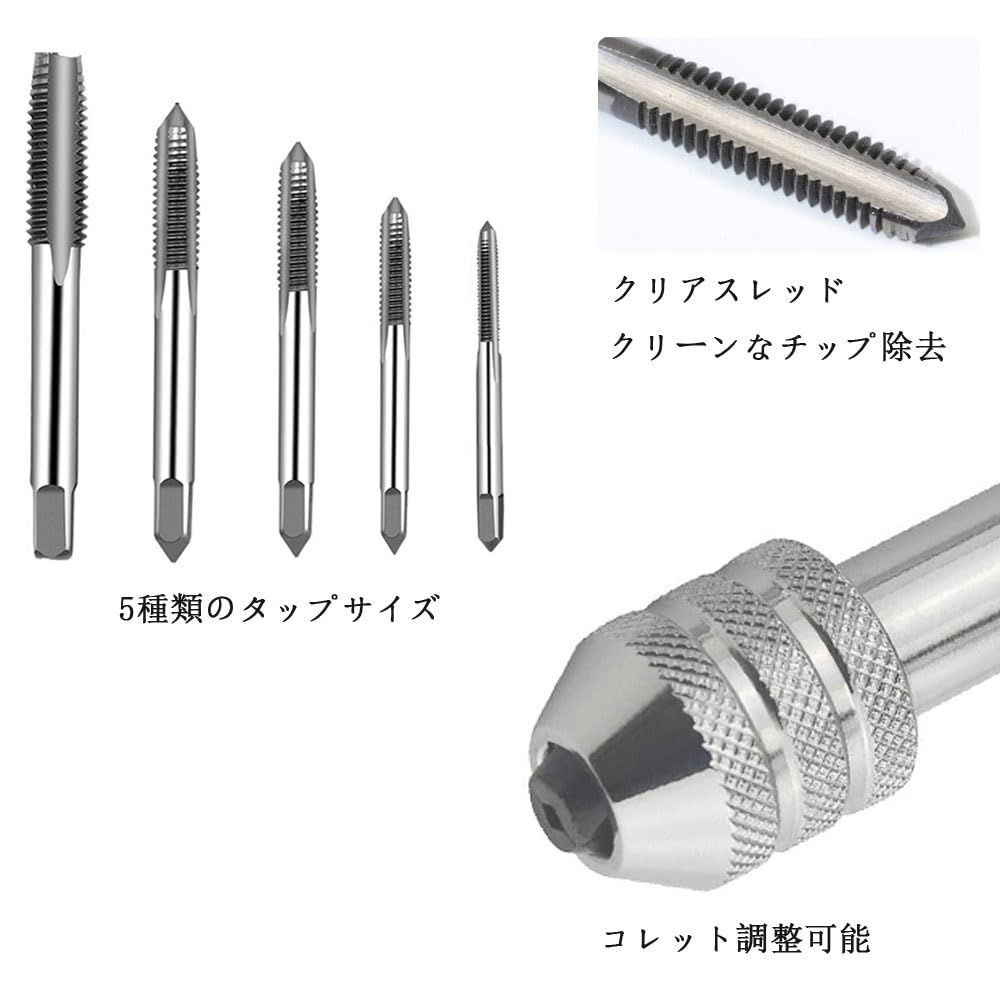 新品 ねじタップ ラチェット タップホルダー 6点セット T型 手動ねじタップ タップレンチ タップドリルセット 折れたボルトや ネジを抜き M3 M4 M5 M6 M8 ねじ切りタッピングハンド 耐摩耗性 調整可能 ハンドタッピング作業用 掘削 接続 ネジ山