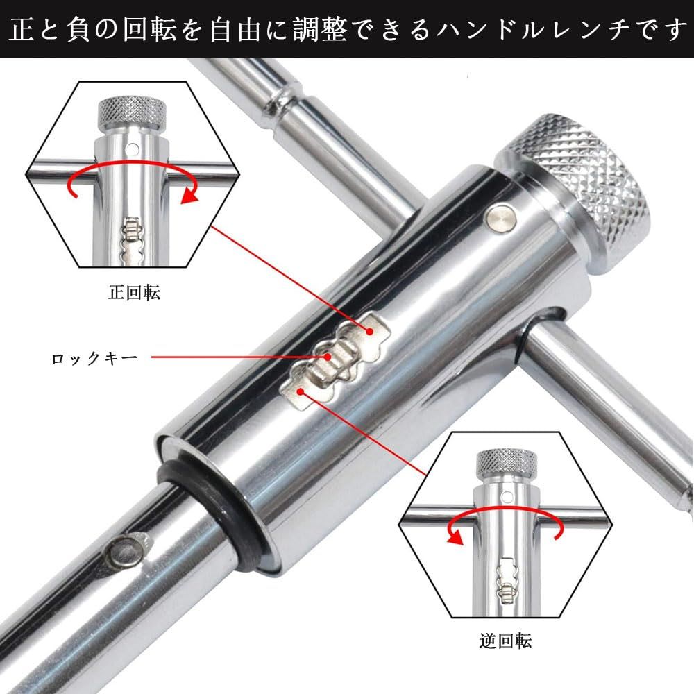 【正と負の回転】T字型タップレンチは正転・逆転のラチェット動作とロックが特徴です。正と負の回転を自由に調整できるハンドルレンチです、中央はロックキーで、ロックして使用することができます。