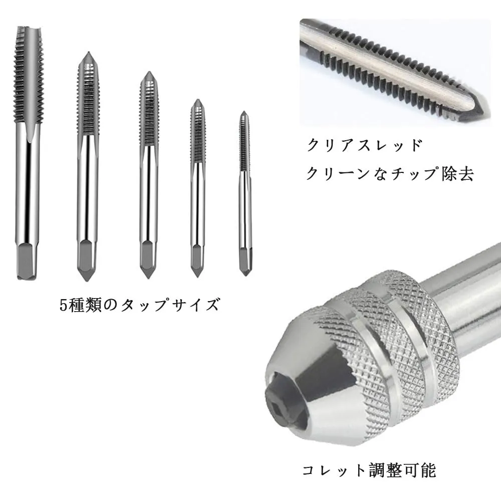 ねじタップ ラチェット タップホルダー 6点セット T型 手動ねじタップ タップレンチ タップドリルセット 折れたボルトや ネジを抜き M3 M4 M5 M6 M8 ねじ切りタッピングハンド 耐摩耗性 調整可能 ハンドタッピング作業用 掘削 接続 ネジ山修正