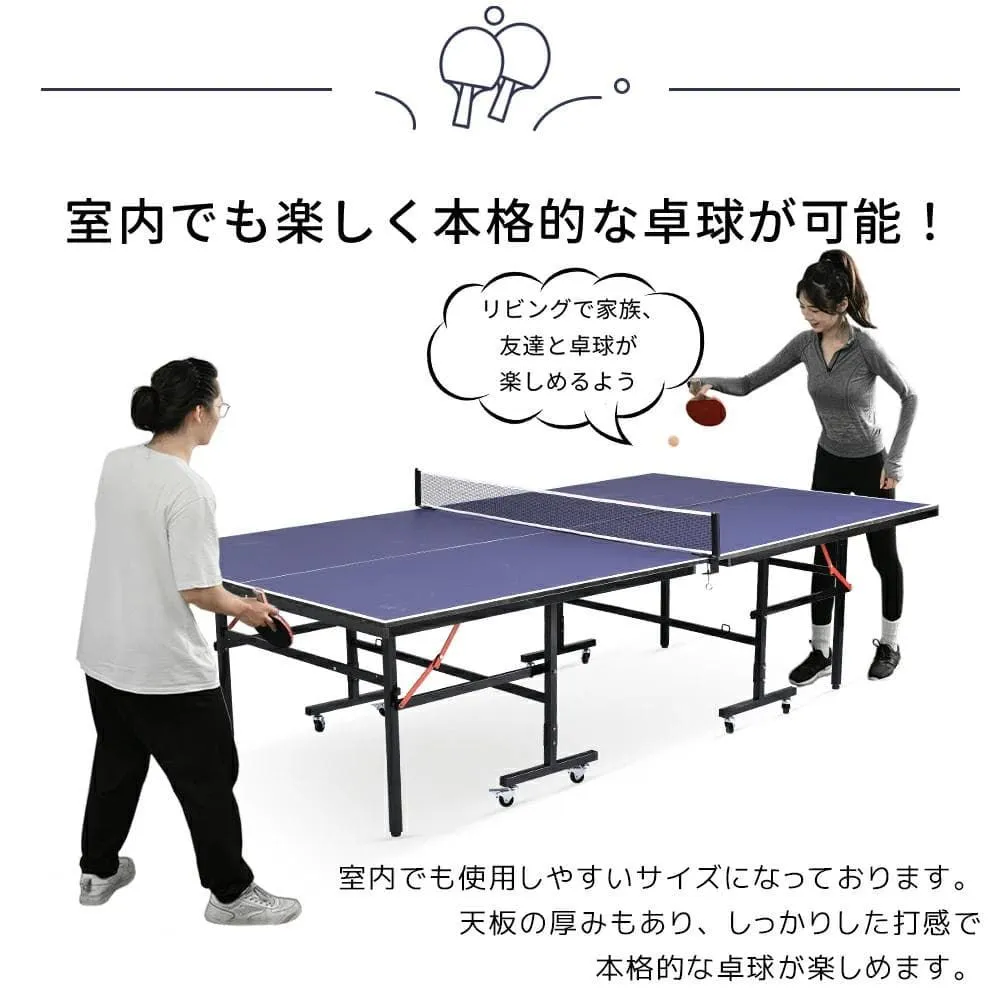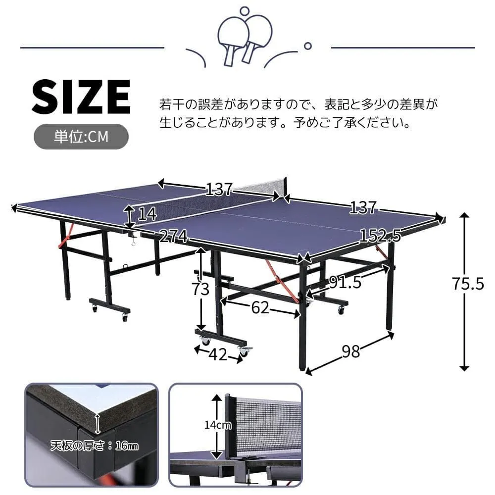 【商品名】:卓球台 国際規格サイズ セパレート式 天板厚16mm 専用ネット付 キャスター付き 移動式 ラケット付 ピンポン球付 折りたたみ 収納でき 自主練