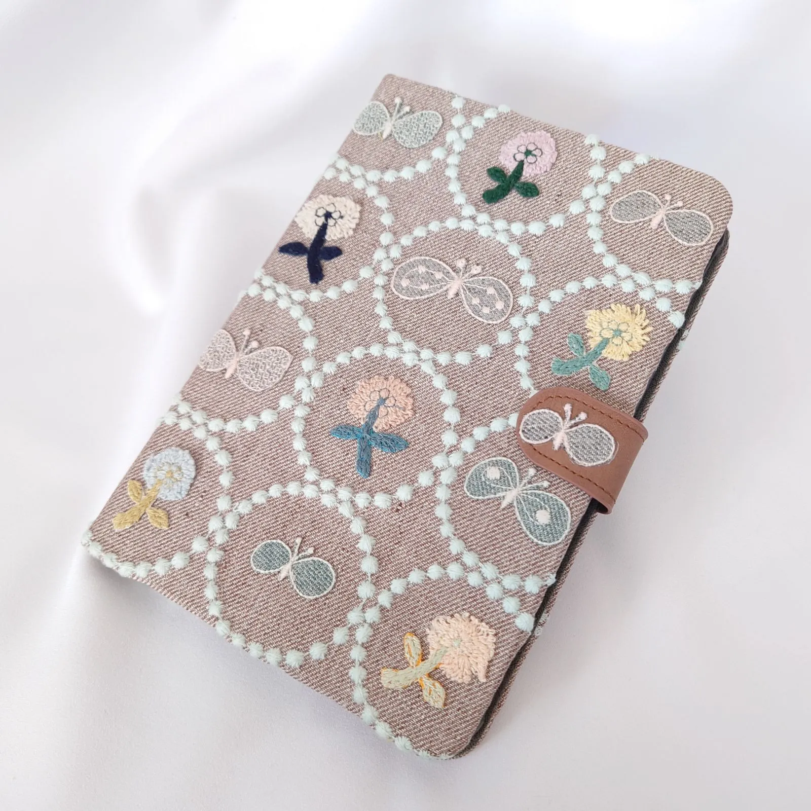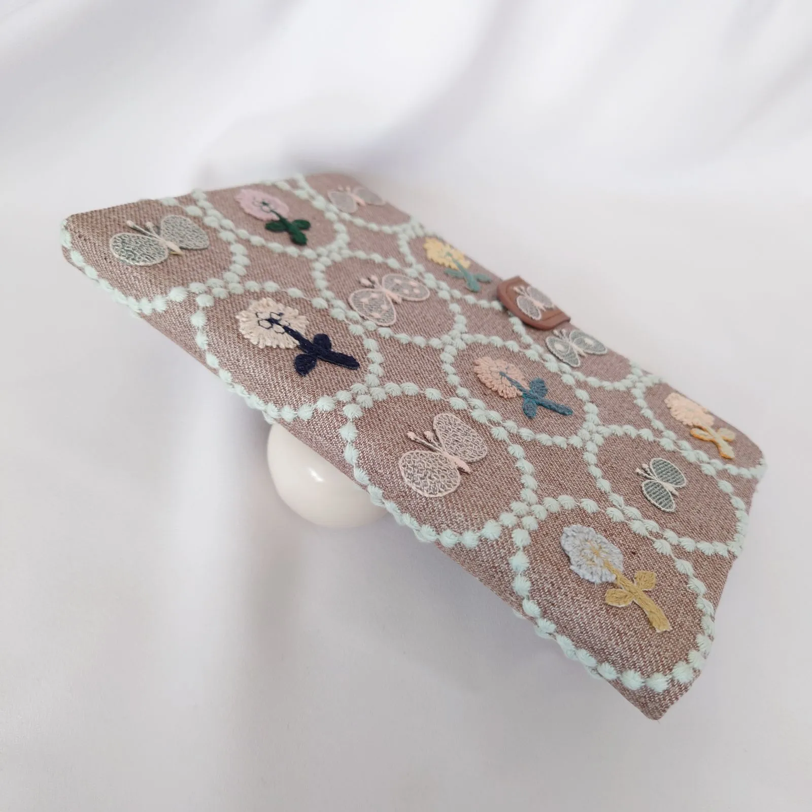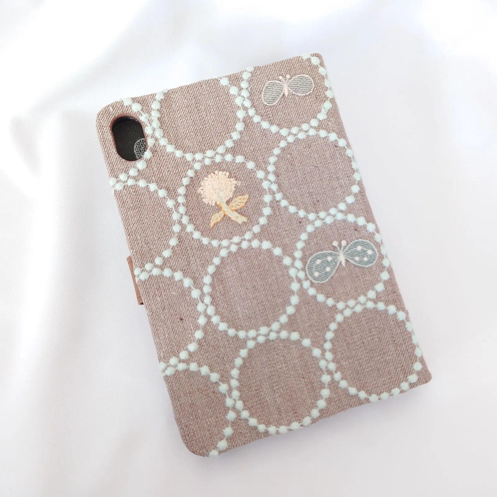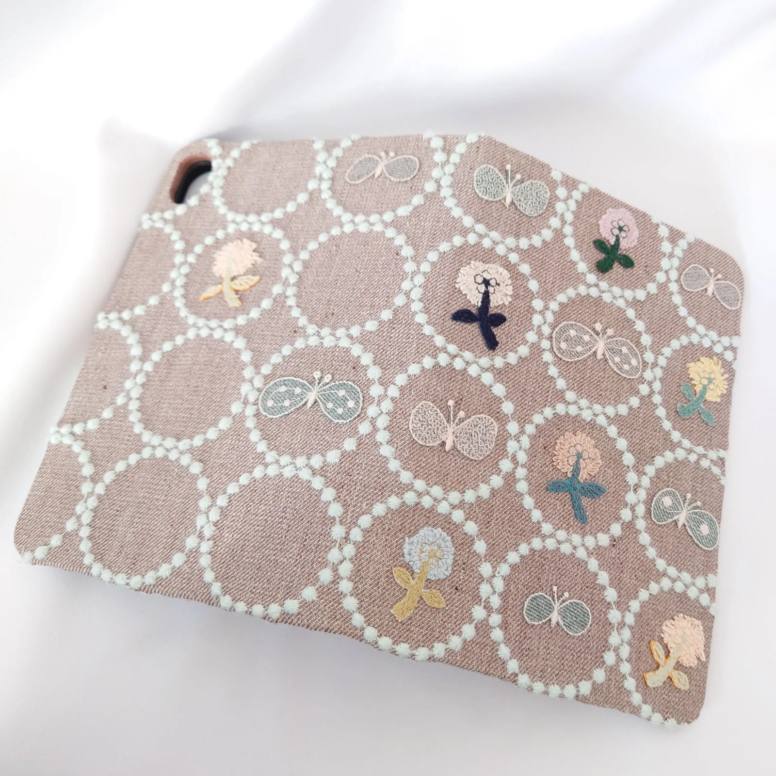 【受注製作】ipadケース 刺繍18こ・ブラウン×ライトブルー タンバリン ミナペルホネン skip choucho