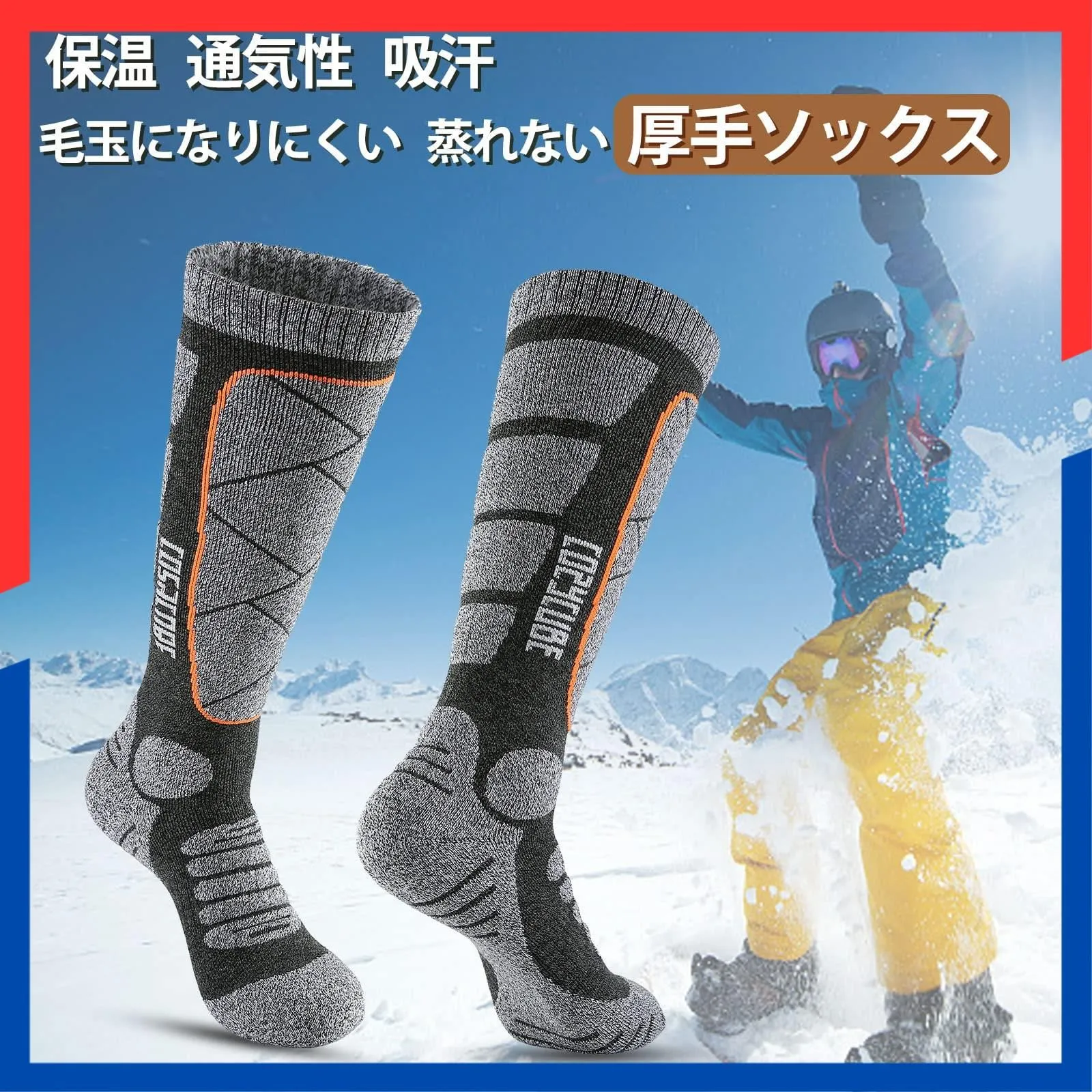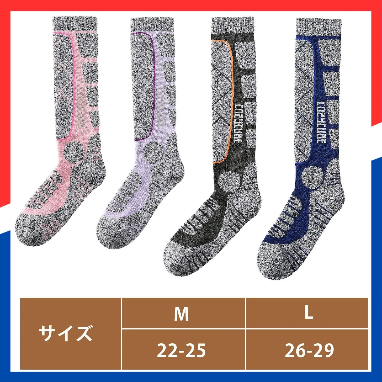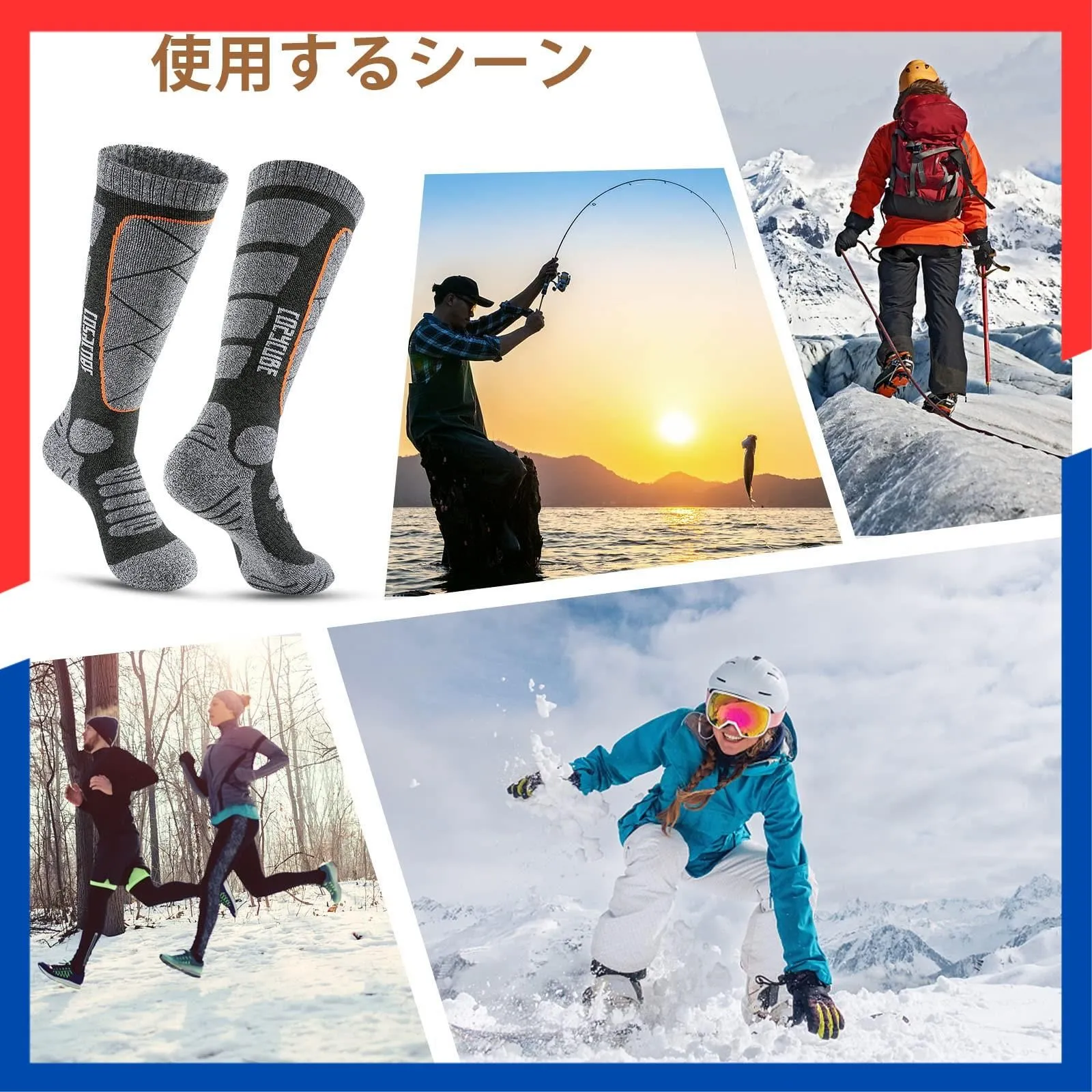 【極寒地でも暖かいソックス】寒い冬のスキーやスノーボードに最適な厚手のスキーソックス。保温性に優れ、雪場や登山の-10℃環境でも足元をしっかり暖かく保ちます。冷え性の方や長時間のアウトドア活動でも安心して使用できます。
