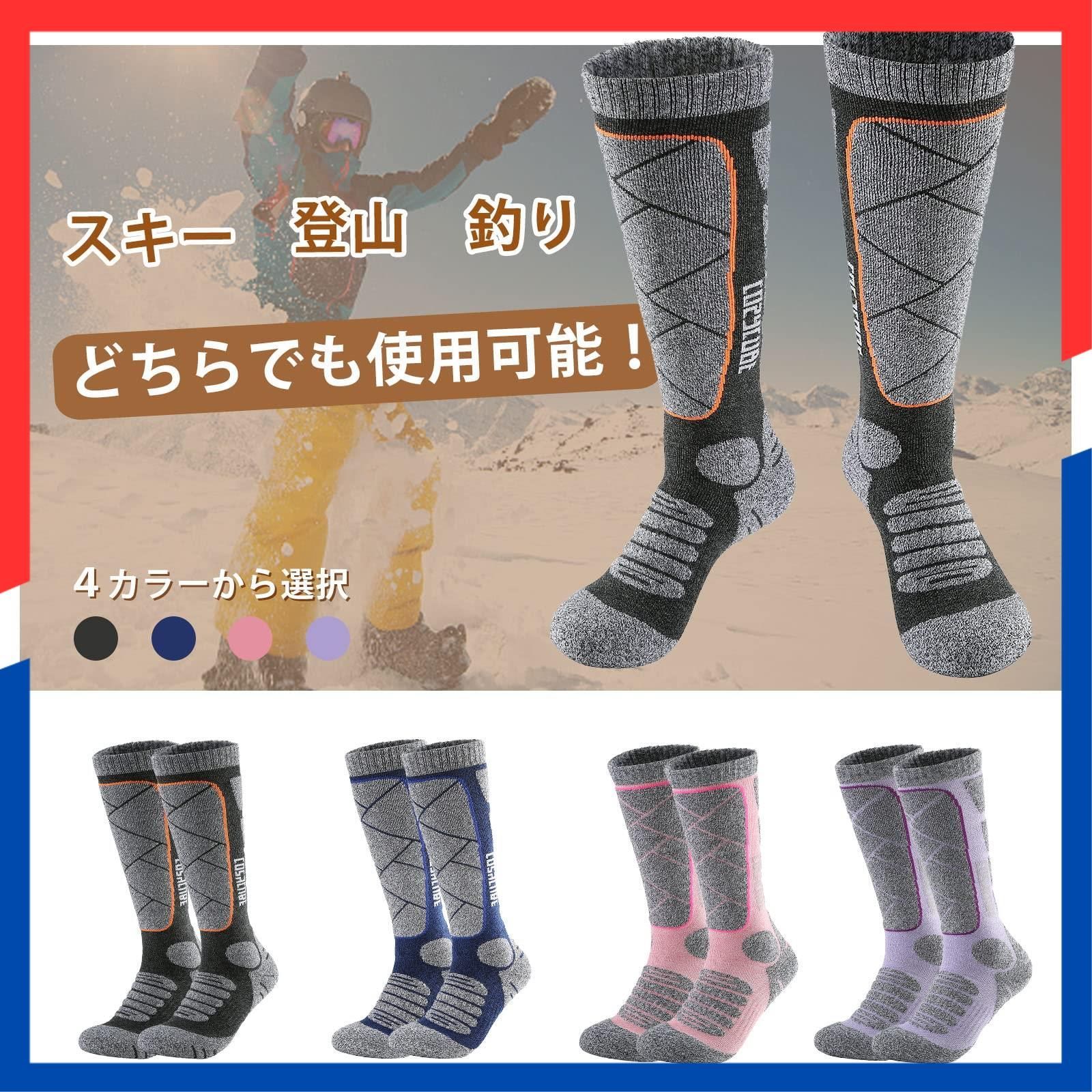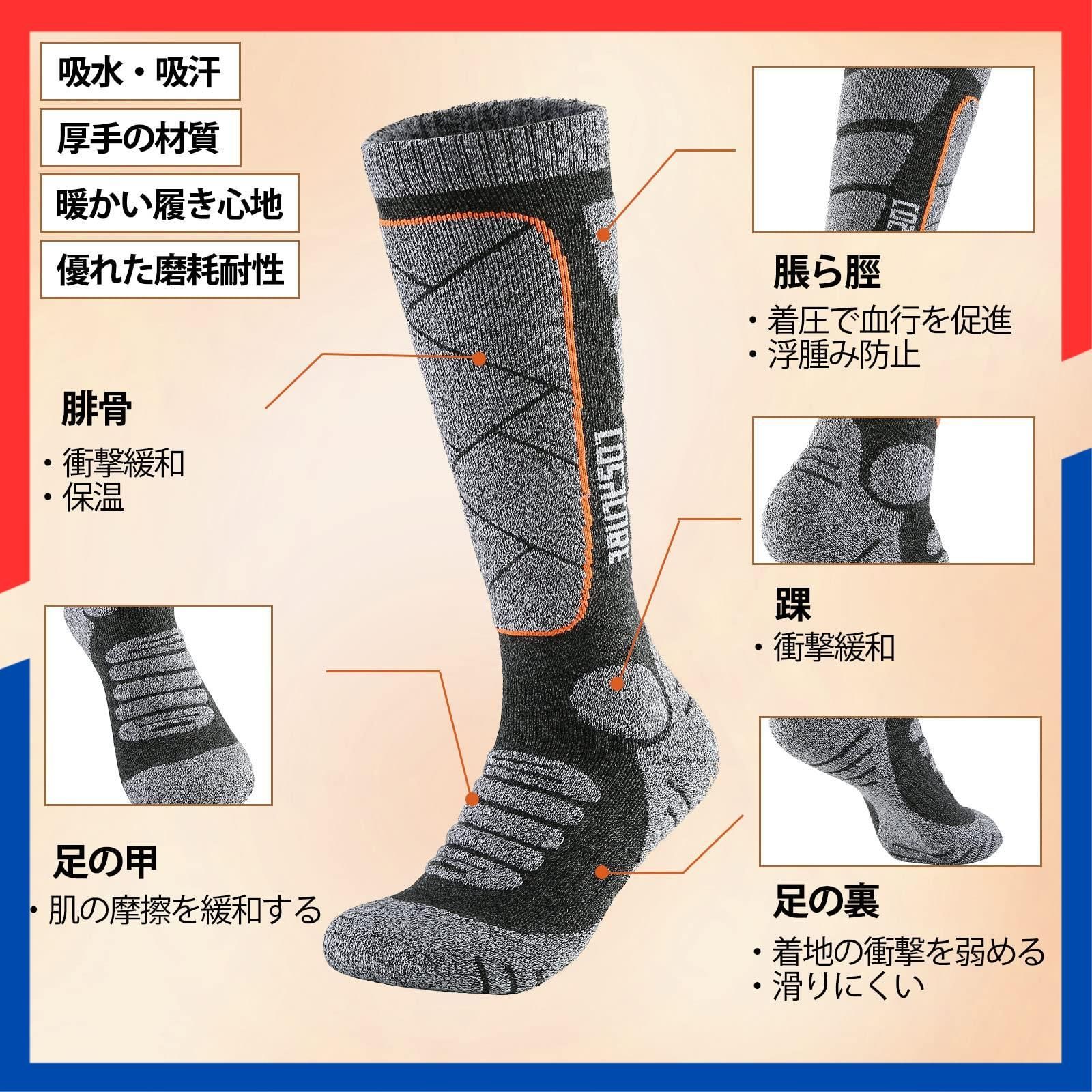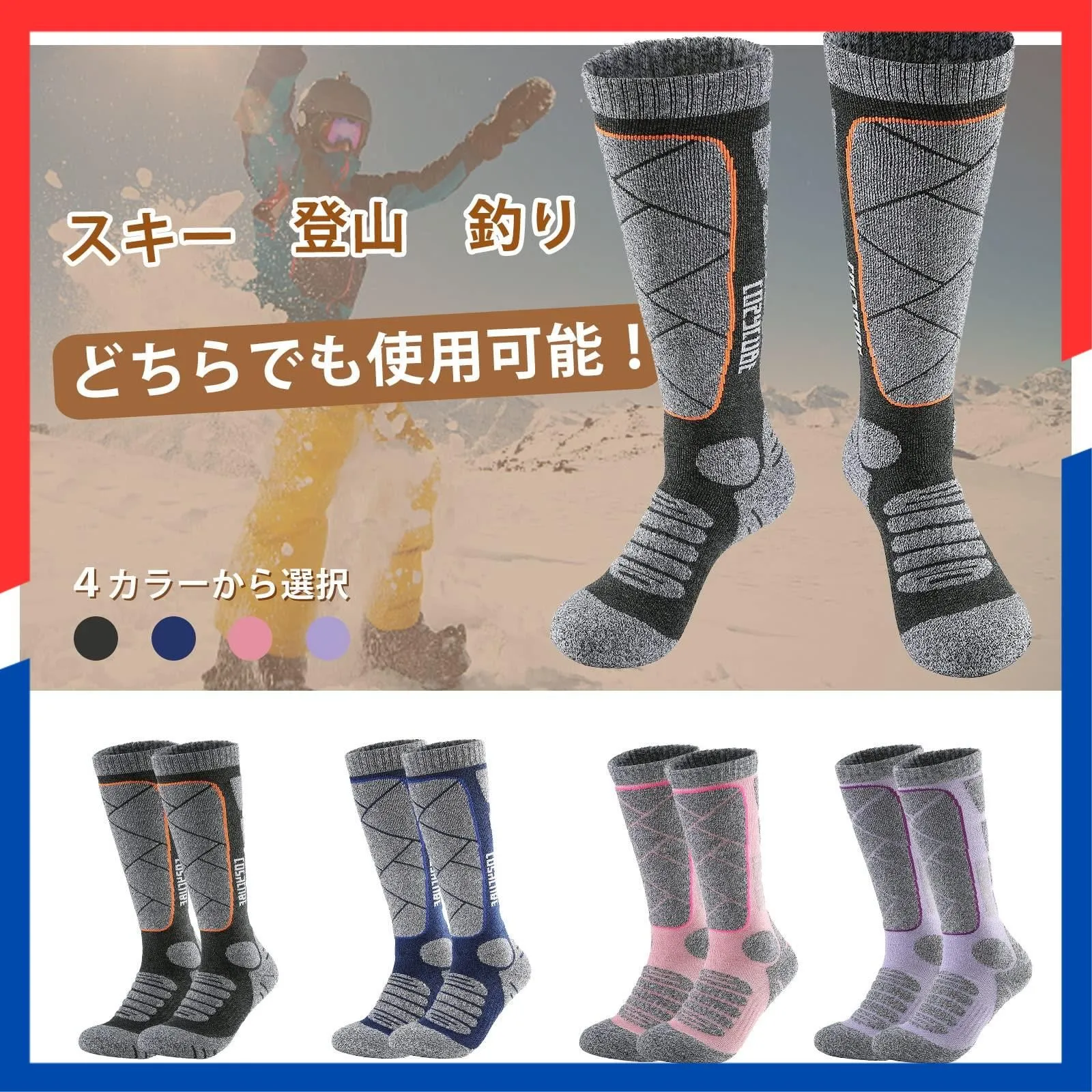 【極寒地でも暖かいソックス】寒い冬のスキーやスノーボードに最適な厚手のスキーソックス。保温性に優れ、雪場や登山の-10℃環境でも足元をしっかり暖かく保ちます。冷え性の方や長時間のアウトドア活動でも安心して使用できます。