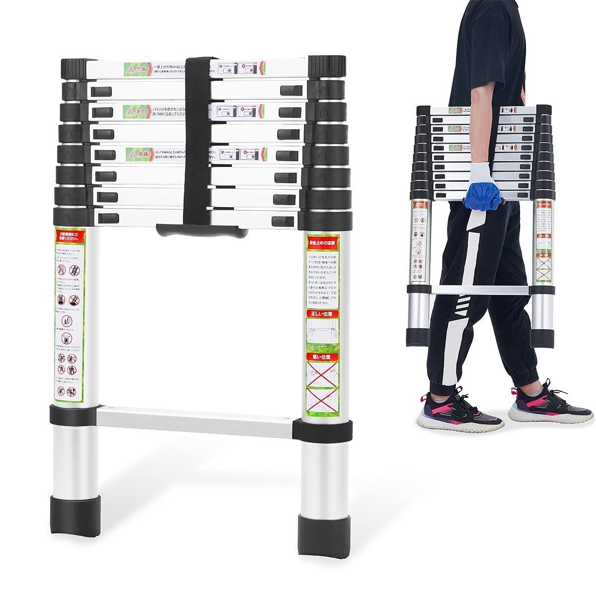 在庫処分 スライド式 自動ロック 伸縮自在 多機能アルミはしご 伸縮梯子 梯子 折り畳み 室内室外両用 持ち運びやすい スライド式 軽量 耐荷重150kg (シルバー 伸縮はしご 2.6m) RIKADE