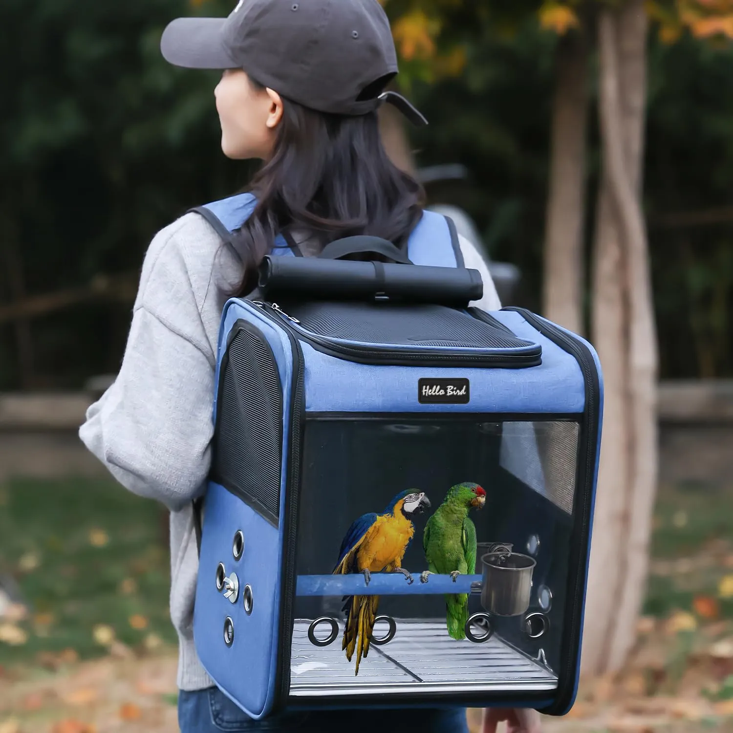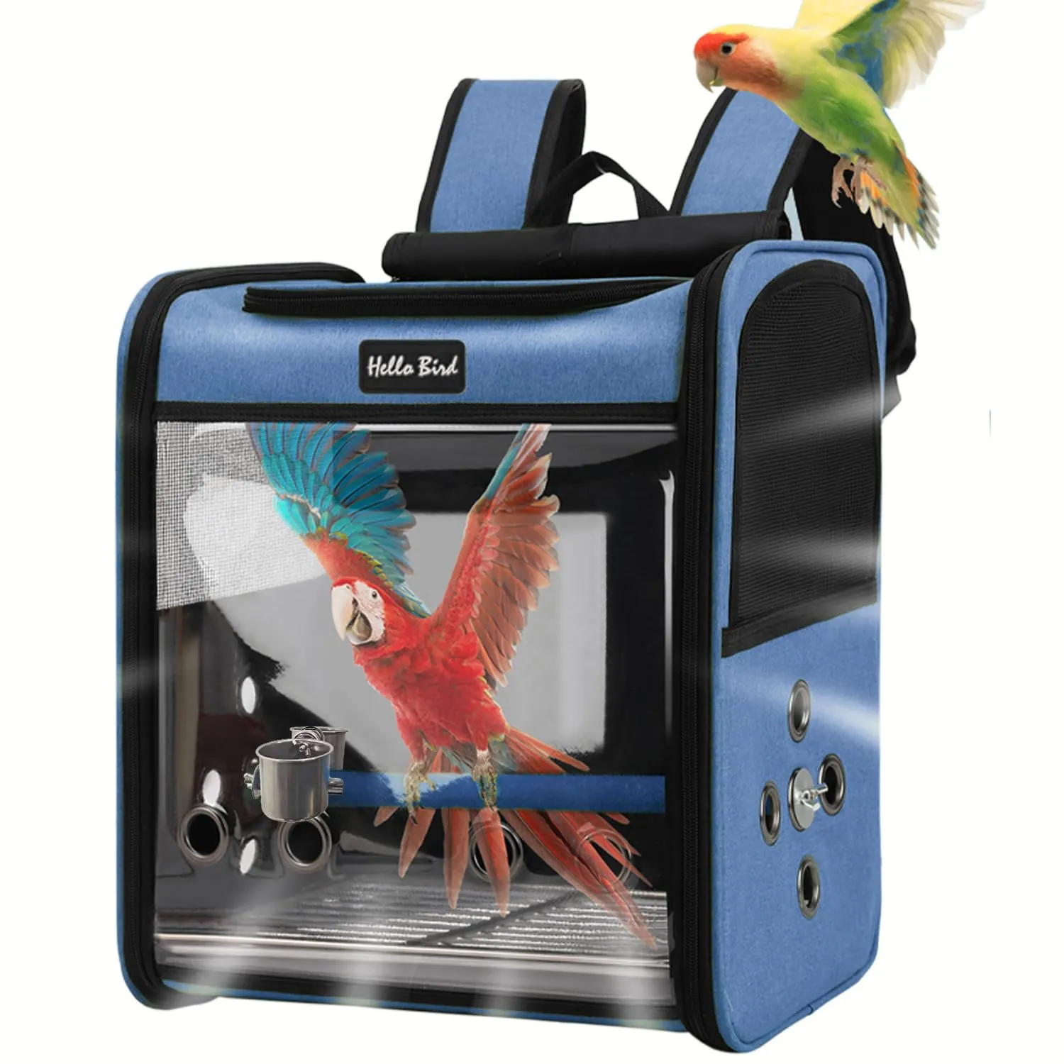 新品 鳥キャリー 鳥バッグ 鳥用 インコ キャリーバッグ キャリーリュック 鳥用 お散歩ケージ お出かけ バードキャリア 外出 持ち運び 止まり木付き 餌入れ 折りたたみ式 散歩、旅行、通院、避難用の鳥かご(ブルー)