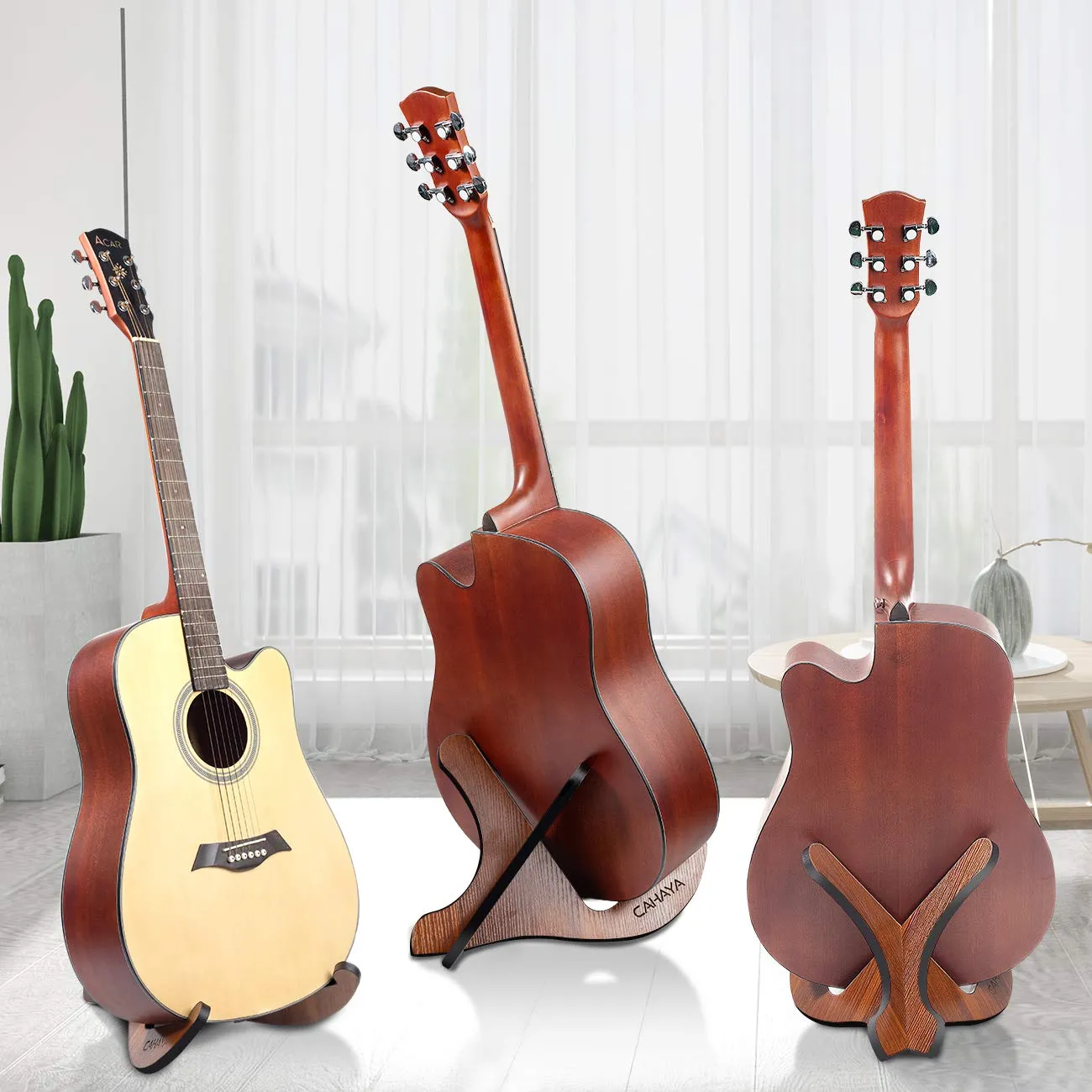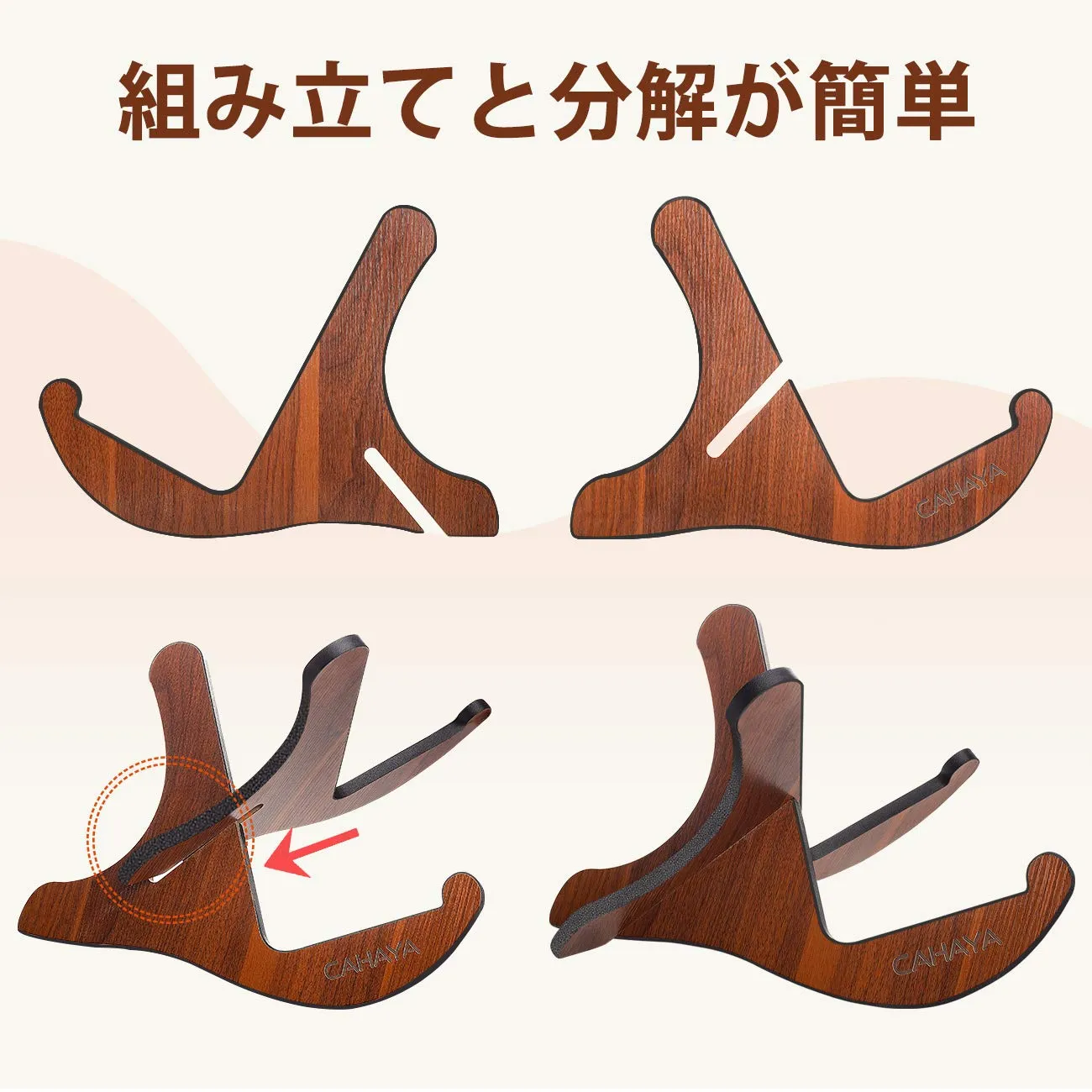 CAHAYA ギタースタンド アコギ エレキ アコースティック (特許番号No 007426069-0001) 木製 折りたたみ 組立簡単 多功能 ギター エレキギター エレキベース バイオリン ギターホルダー 汎用 安定 木目色 天然木材 Green環境保護素材 40x30x26cm 軽量900g 厚さ倍増1.5cm CY0180