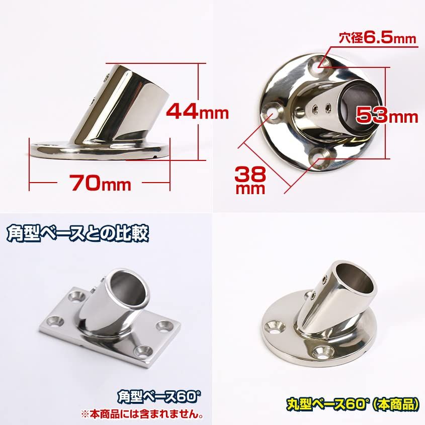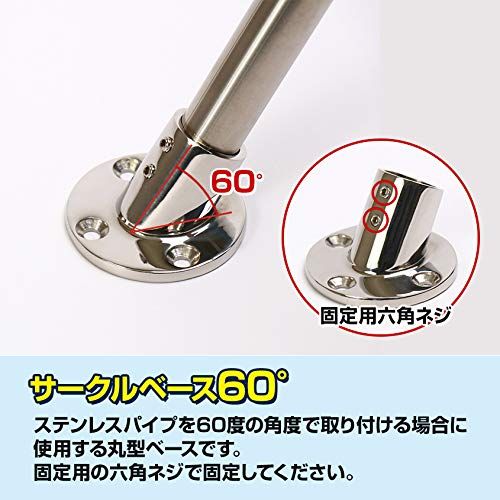 【SUS316 ステンレス】 耐塩 耐食性 耐孔食素材 パイプ ジョイント 丸型 ベース 60度 25mmパイプ用 取付金具 色: 丸型 25mm (60度) 25mmパイプ用 取付け 丸型ベース金具 60度 回転止めネジ付き ※別途六角レンチ(3mm)が必要です 腐食に強いSUS316ステンレス この商品は、お得な2個セットで販売いたします 寸法や各部詳細は画像をご確認ください