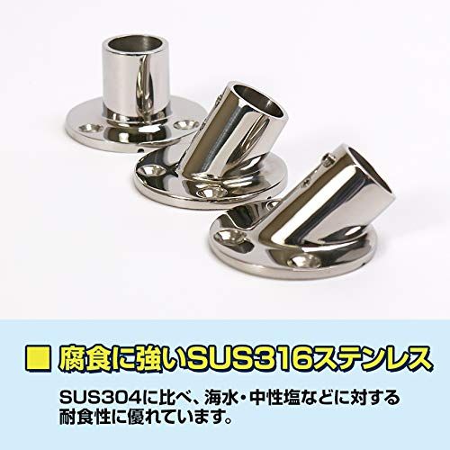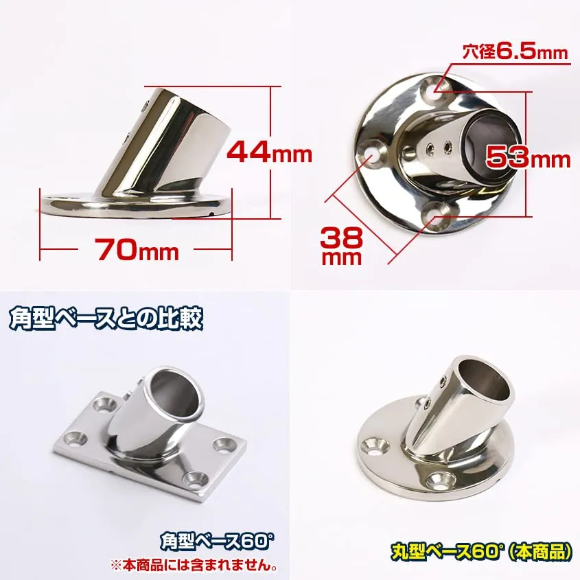 新品 2個セット 船 オーニング ボート テント 自作用 【SUS316 ステンレス】 耐塩 耐食性 耐孔食素材 パイプ ジョイント 丸型 ベース 60度 25mmパイプ用 取付金具