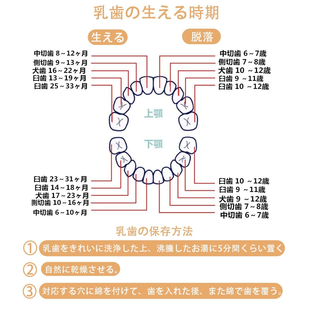 【子供の成長記念】乳歯入れケース お子様の乳歯20本すべて収納可能です。歯を入れる穴は歯の並びに対応していますので、いつ抜けたのかが一目で分かります。