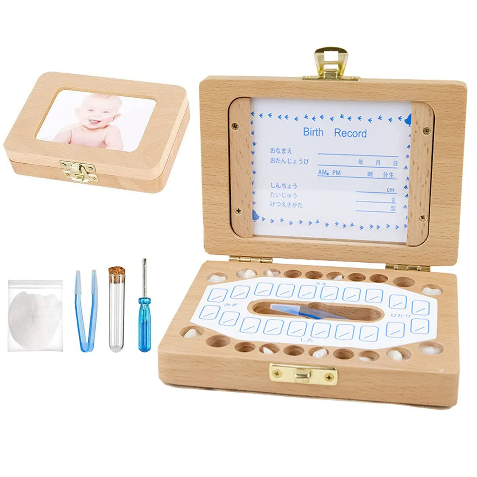 新品 サムコス 乳歯ケース 木製 乳歯入れ 写真入れ 日本語版 子供 歯 保管 収納 記念な乳歯 ベビーメモリアルグッズ 男の子/女の子