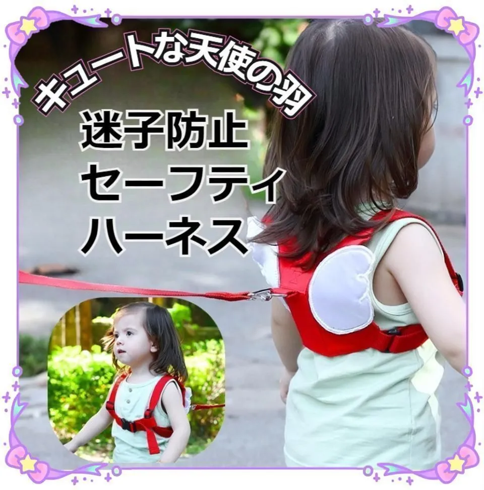歩き出したお子様の迷子やとび出し防止に、手を繋ぎたがらないイヤイヤ期に、離さずしっかり見守ることができる天使の羽ハーネスです。