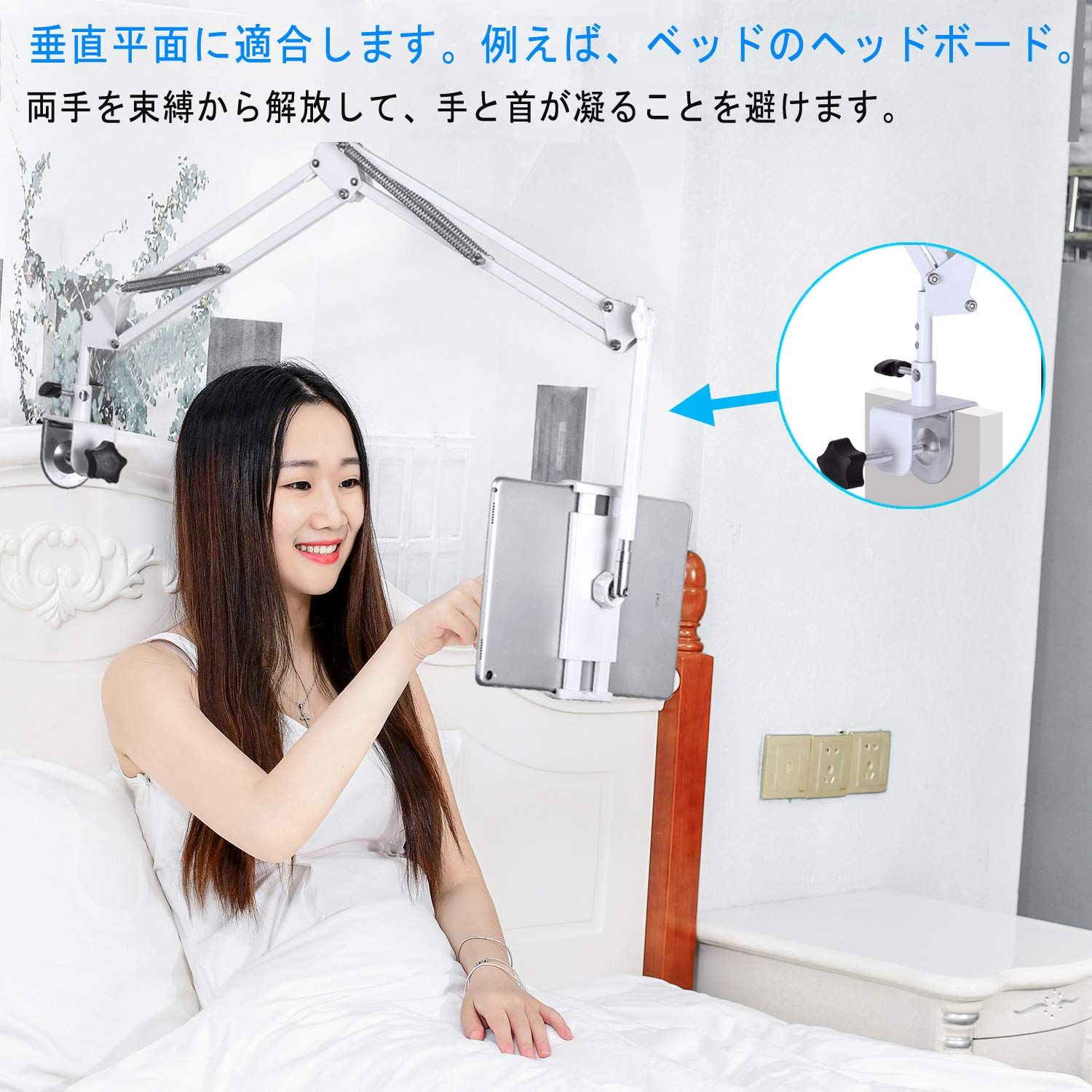 【最新 タブレット スタンド タブレット アーム スタンド 横/縱き 寝ながら iPad/iPhone アーム スタンド or ホルダー ベッド、デスク、台所タブレットスタンド 4.512.9インチ for iPad pro 、iPad 、Kindle、android surface、Fire HD8、N-Switch、iPhone XR、iPhone XS多機種対応(ホワイト) 1 特にベッド用 最新のクランプで、ベッドの横に付けるだけでなく、ヘッドボードの縱向きにも取り付けます。クランプ部は最大55mmまで広がるので、たいていの天板にはセットできます。 2 調節可能な 4つの関節を採用された2024世界初最新のクランプ式タブレットアームで、角度向きをもっと自由に調節できます。使わないときには折りたたんでおけます。 3 ワイドな互換性 4.5インチ~12.9インチ対応。このスタンドは、iPhone、iPad Pro、iPad Air、N-Switchを取り付けるのに最適です。(N-Switch iPad pro 9.7インチ/10.5インチ iPad air iPad mini iPhoneXSiPhoneXiphone8 iphone8 plus iphone7 iphone7 plus iphone6 iphone6 plus iphone6s iphone6s plus) 4 最大荷重:1000g 頑丈で完全に調整可能な4段式アルミニウムアーム付きタブレットスタンド(最大荷重:1000g)。家に全ての所に使用可能、例えば、ベッド、デスク、台所などにも適用可能です。勉強と仕事と娯楽に対する良い助手です。 5 簡単な取り付け:工具は要りません。家に全ての所に使用可能、例えば、ベット、デスク、キャビネット、テーブル、本棚、台所などにも適用可能。 ブランド SAMHOUSING 色 ホワイト フォームの形式 アーム 対応デバイス IPad air/air mini/air2/mini2/3/4/3/2/初代iPad ipad pro 9.7インチ/10.5インチ/12.9インチ Android tablets iphone x/iphone xs/iphonexs max/iphone xr iphone8/8plus/7/7 plus/6/6 plus/6s/6s plus/5/5s 4-6.5インチスマホ Kin… 表示を増やす 対応電話モデル Apple iPhone XR Apple iPhone XS 最後までご確認頂き誠にありがとうございました。 ご確認頂き、ご購入いただけましたら幸いです。 何かご不明点などがございましたらお気軽にメッセージからお問い合わせ下さい。