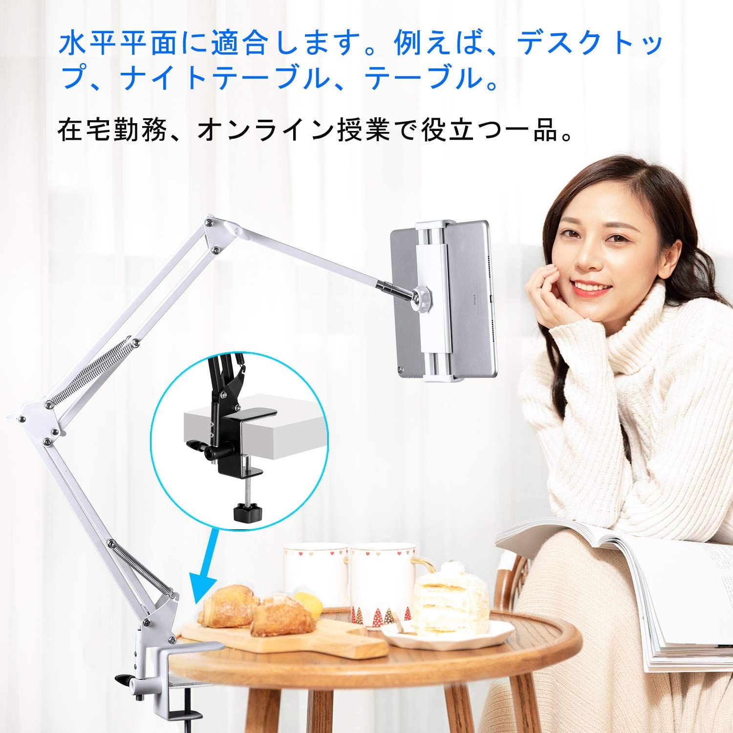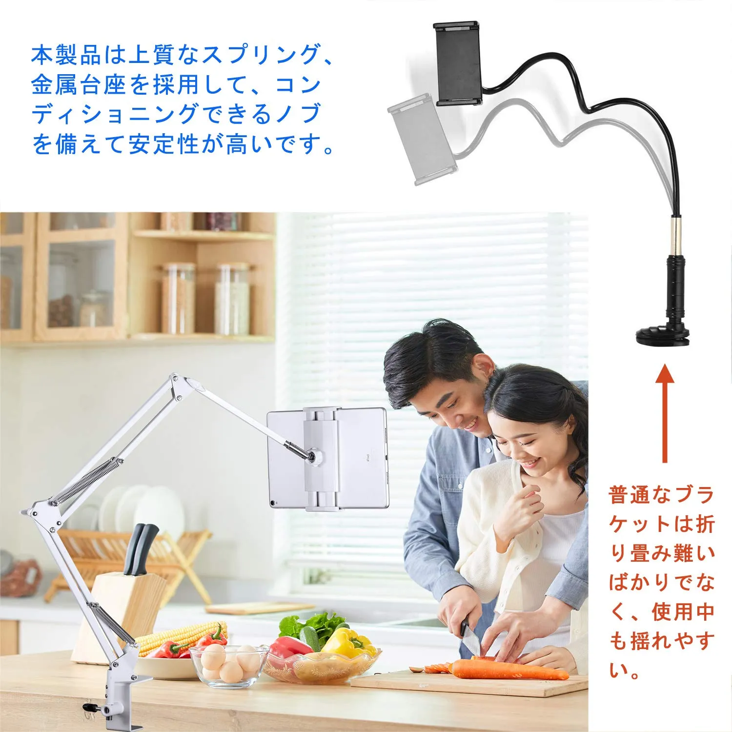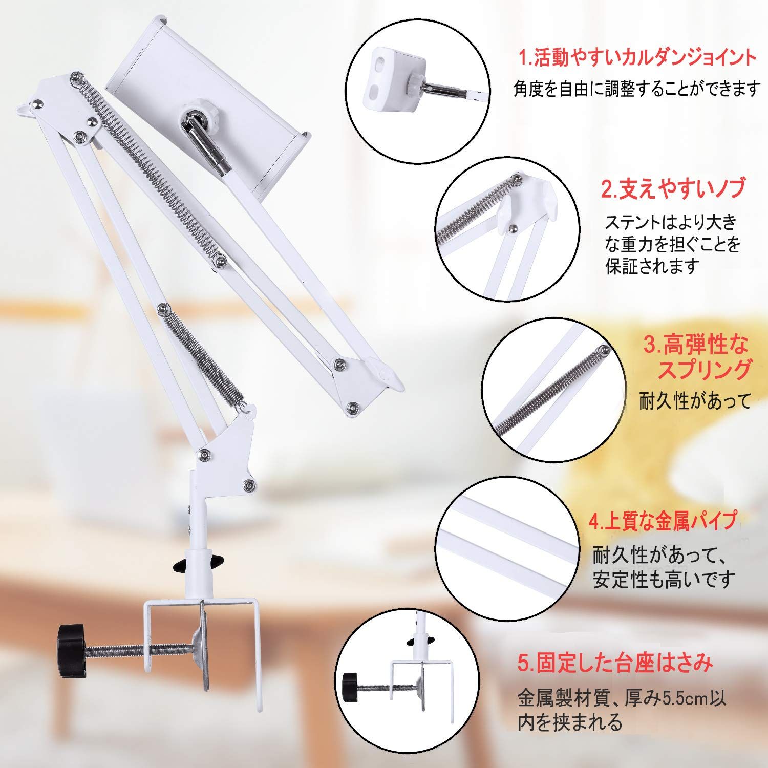 【新着商品】ホルダー ベッド、デスク、台所タブレットスタンド or 4.512.9インチ スタンド for スタンド iPad スタンド pro アーム 、iPad アーム iPad/iPhone 、Kindle、android 寝ながら surface、F