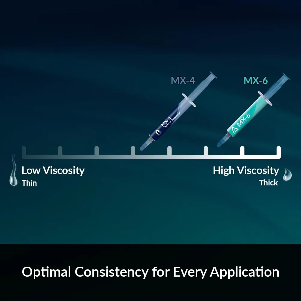 サーマルペーストは炭素微粒子で作られており、非常に高い熱伝導率を保証します。これにより、CPU/GPUからの熱を素早く効率的に放散します。MX-4